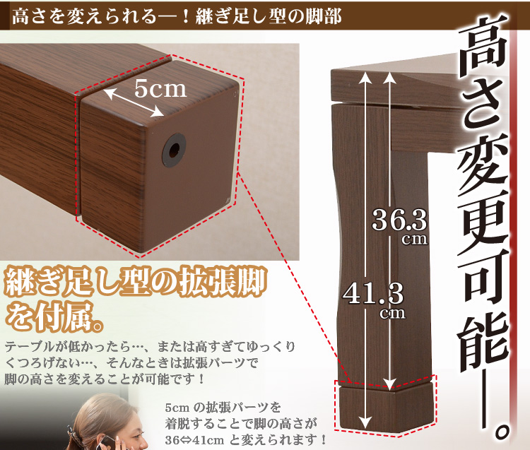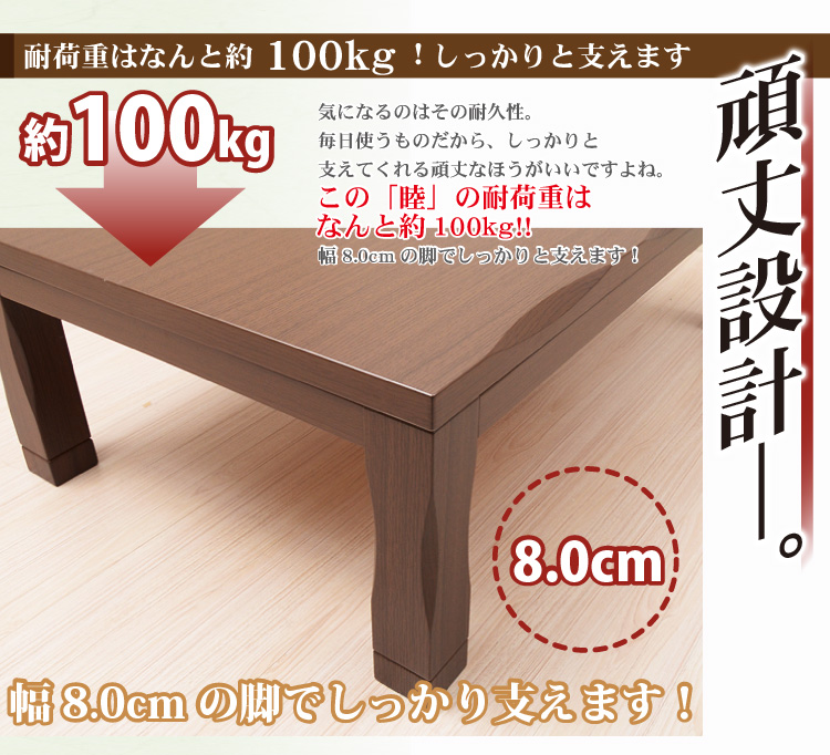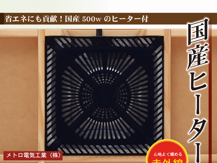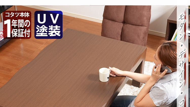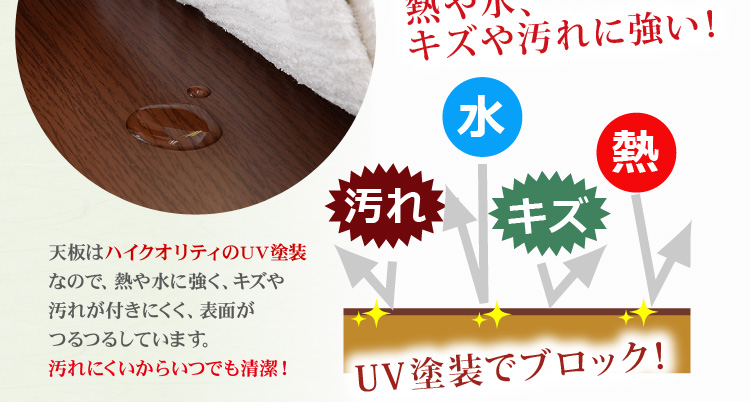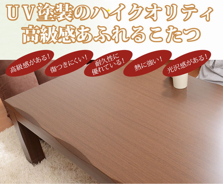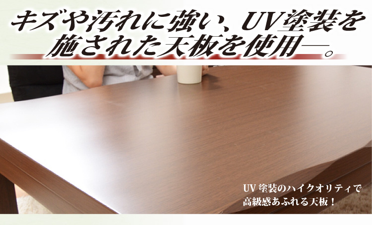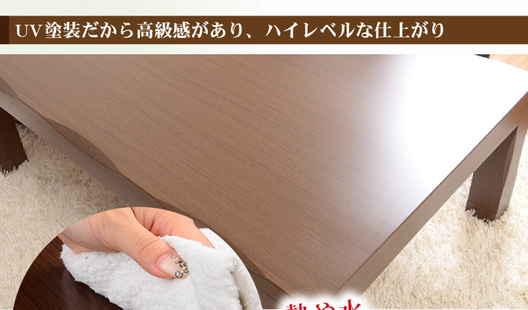 UV塗装で傷つきにくく、熱や水にも強いです。汚れにも強いのでいつでも清潔!透明感のあるこたつに仕上がっています!
