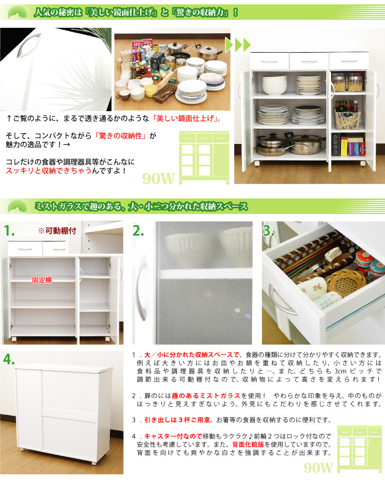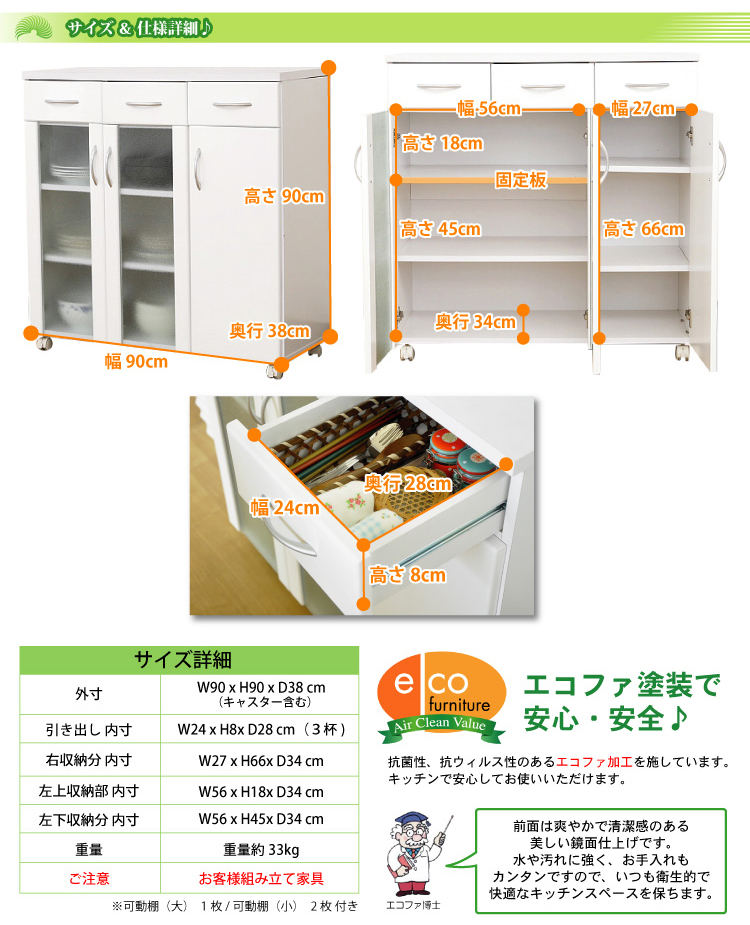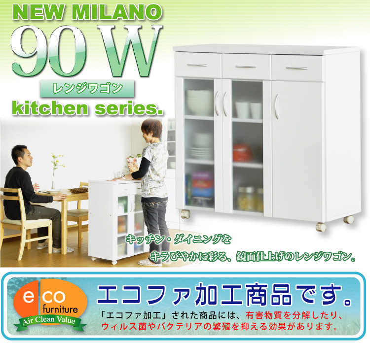 ニューミラノの食器棚は、有害物質の分解、ウィルス菌、バクテリアの繁殖を抑制をする「エコファ加工」を施しているので衛生面もしっかり!