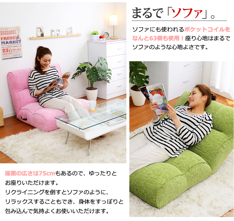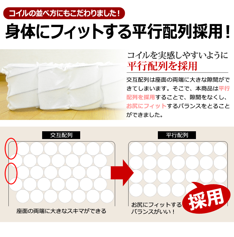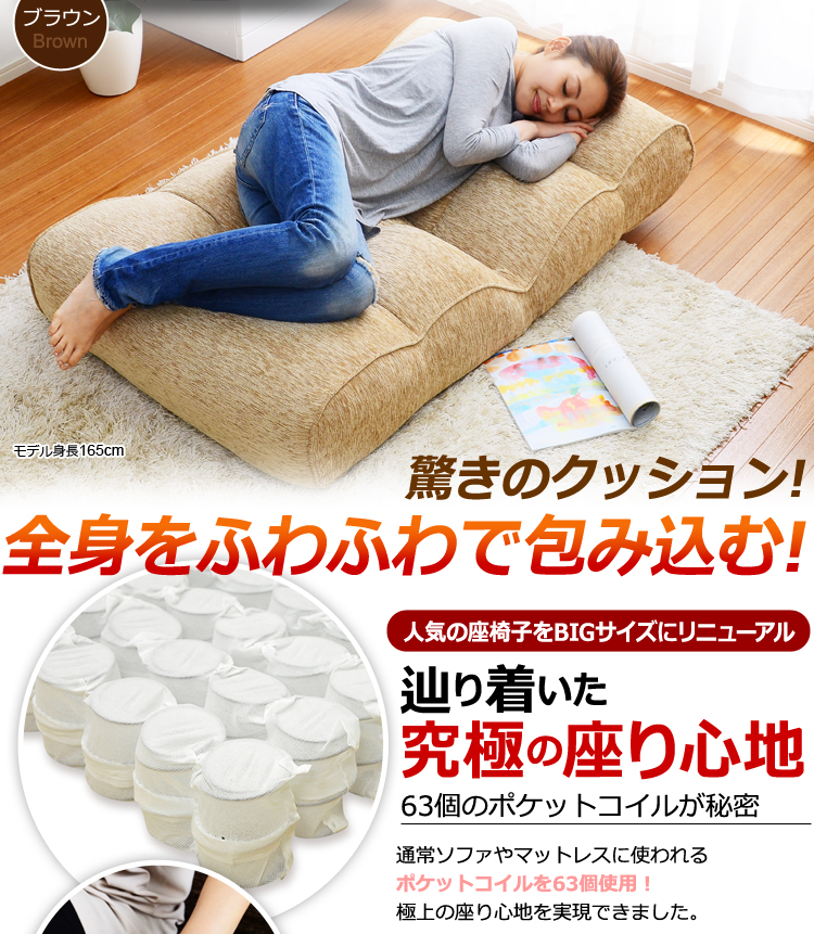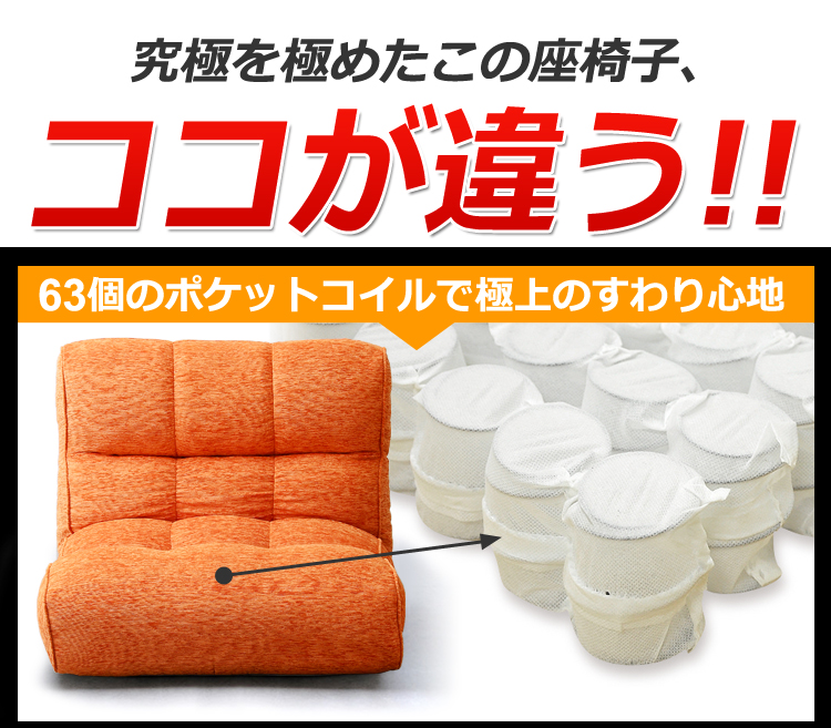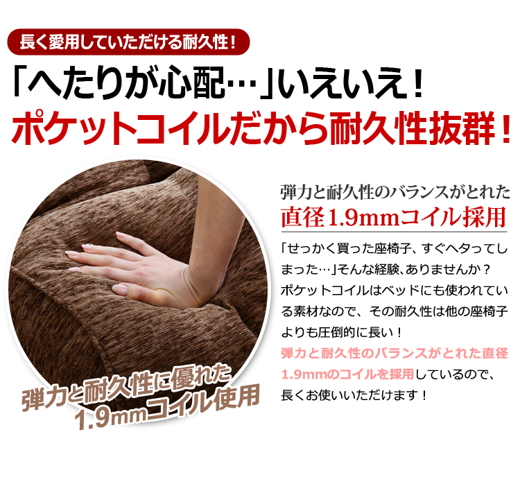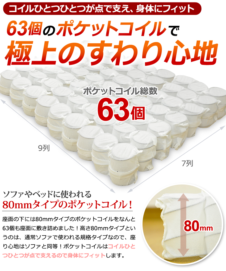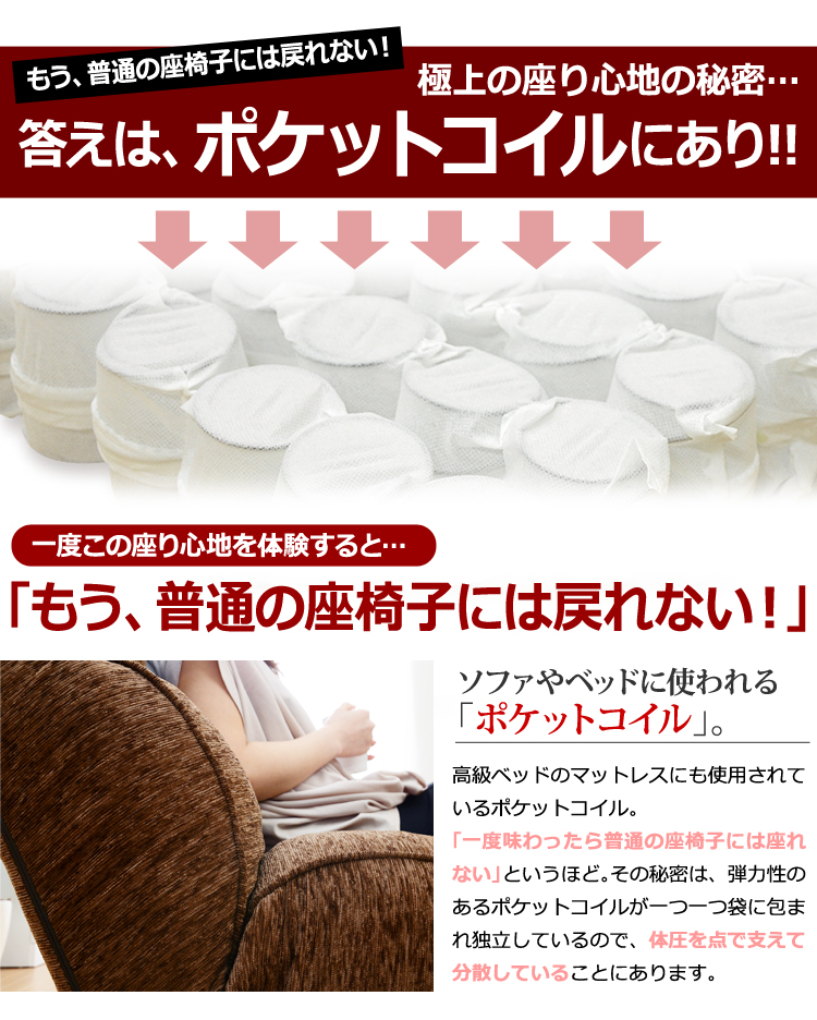 ソファやベッドに使われるポケットコイルをふんだんに使っているので、まるでソファに座っているかのような納得の座り心地です!