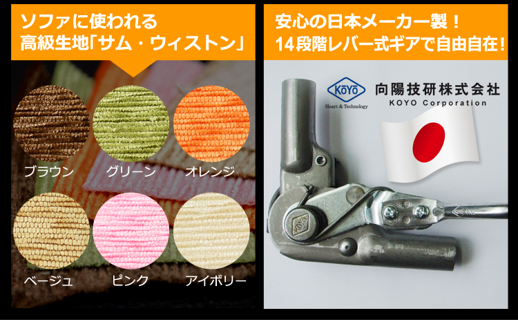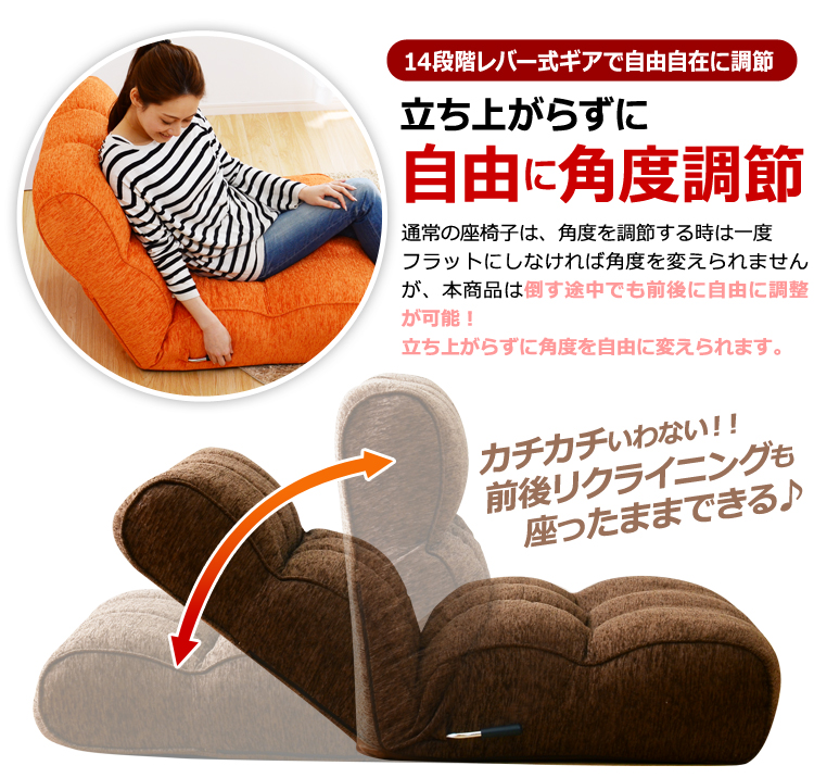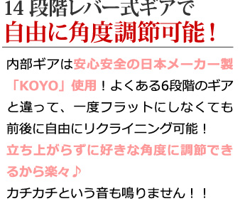 14段階レバー式ギアで立ち上がらずに自由に調節できます!
