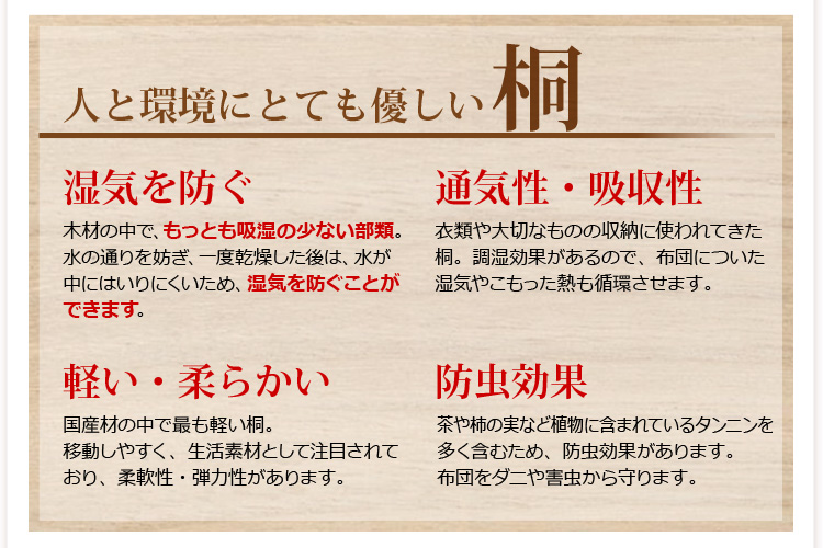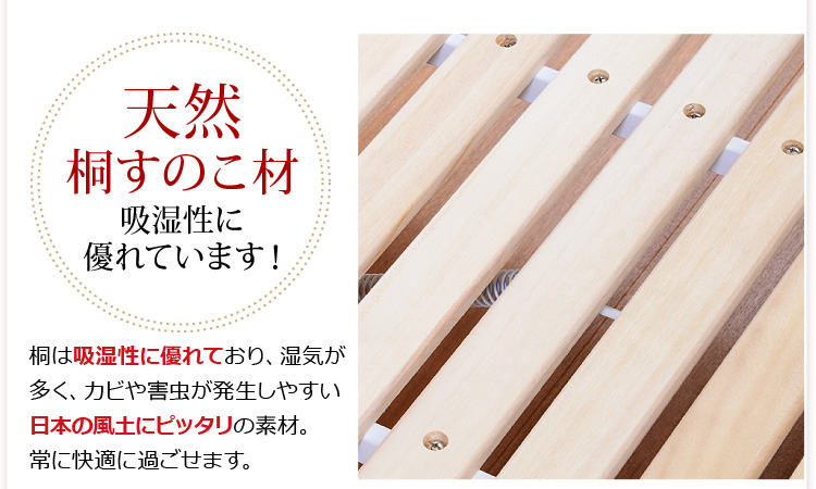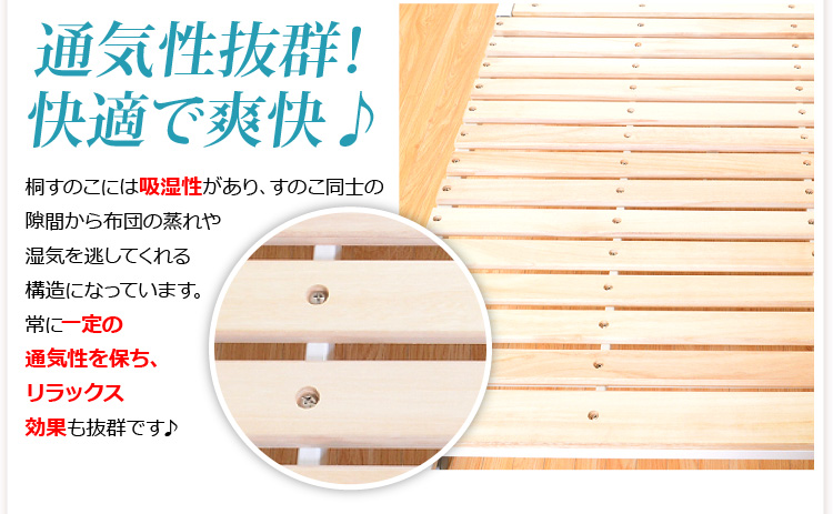 通気性、吸湿性共に優れる桐すのこ。快適な睡眠をサポートします!