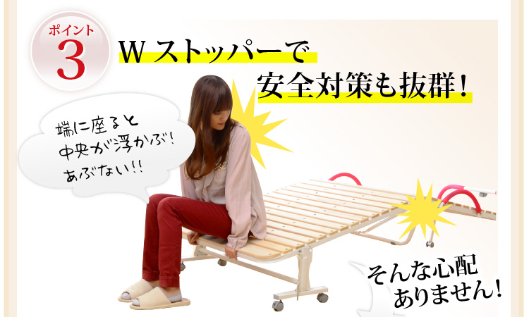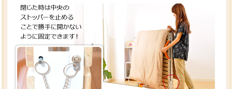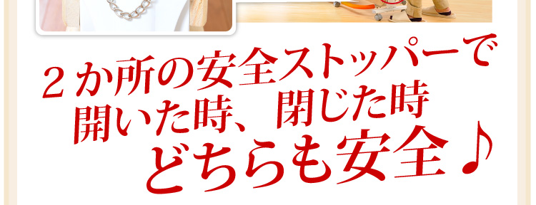 開くときも閉じるときも2ヶ所の安全ストッパーがあるので安心!キャスターにもロック機能が付いているので安全です!
