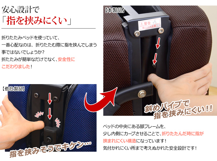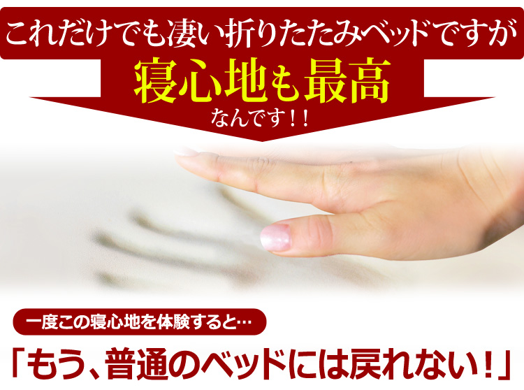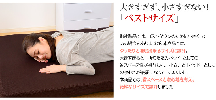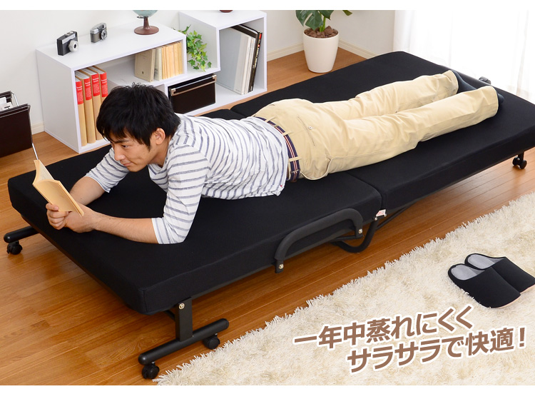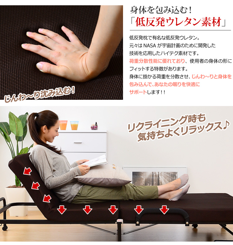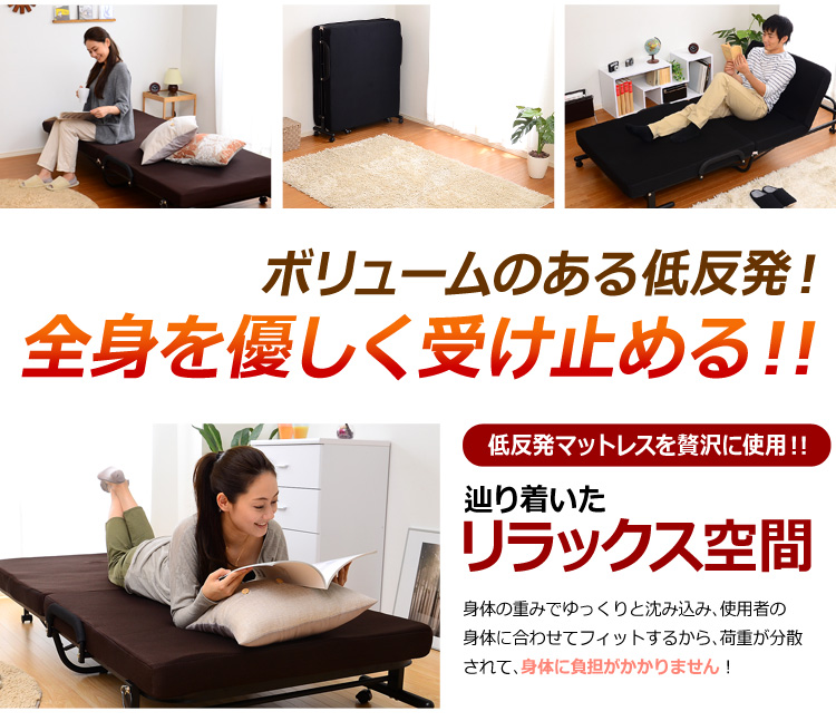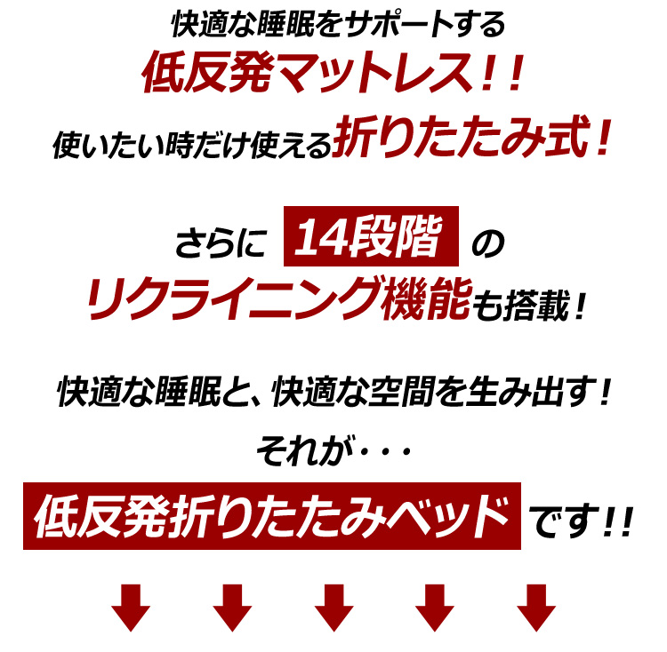 体に負担のかからない低反発マットレスを贅沢に使用!折りたたみもちょっとした力で簡単にできるので、使いたいときにすぐに使えます!