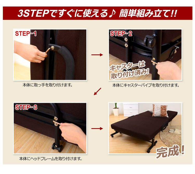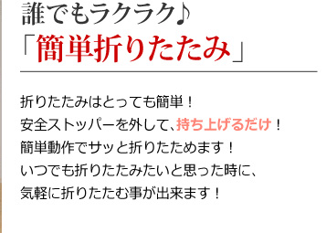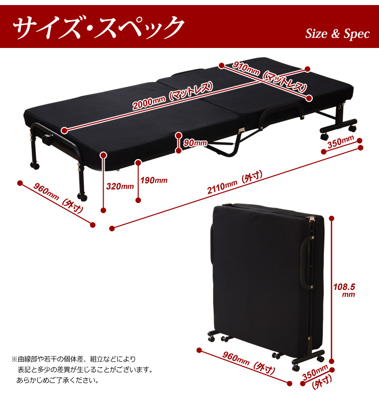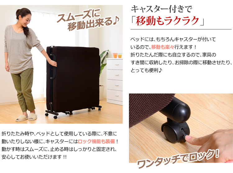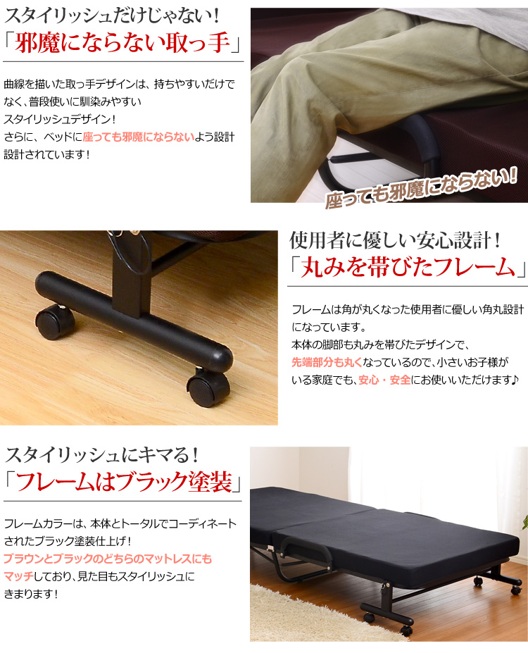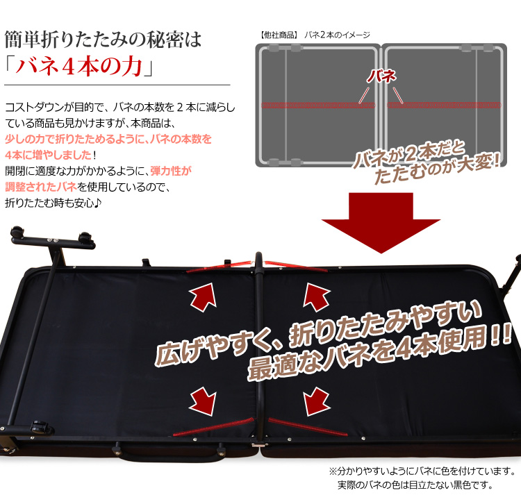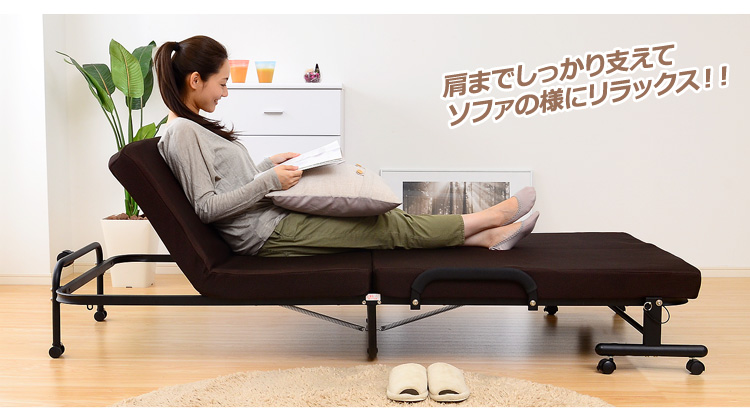体に負担のかからない低反発マットレスを贅沢に使用!折りたたみもちょっとした力で簡単にできるので、使いたいときにすぐに使えます!