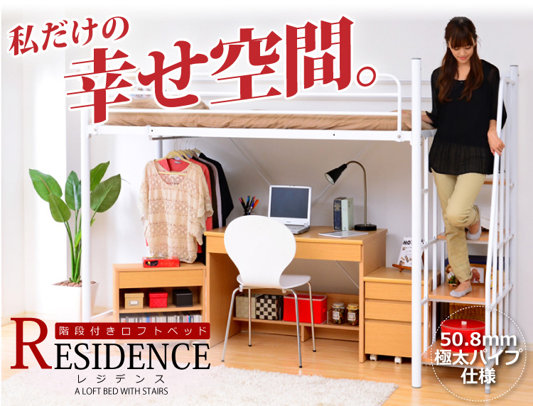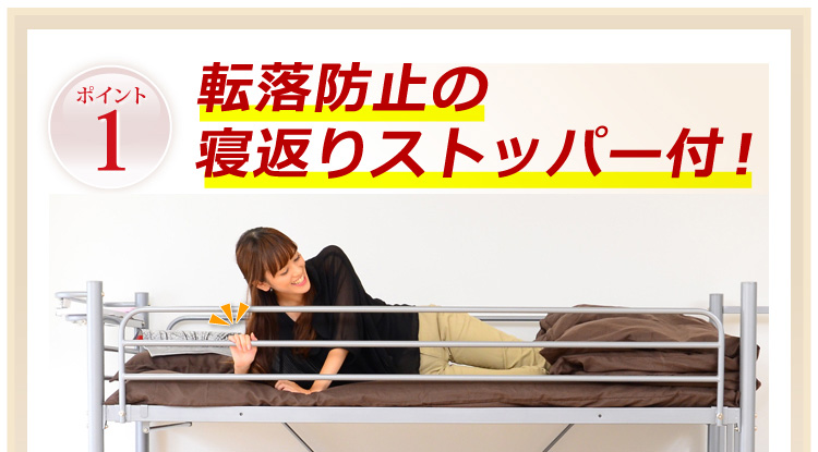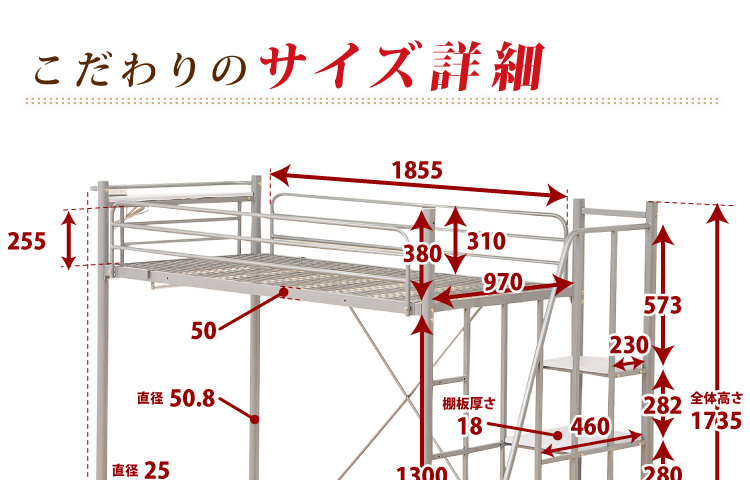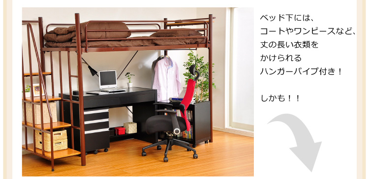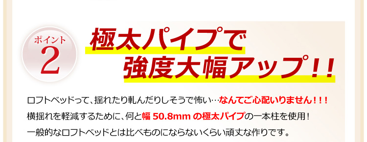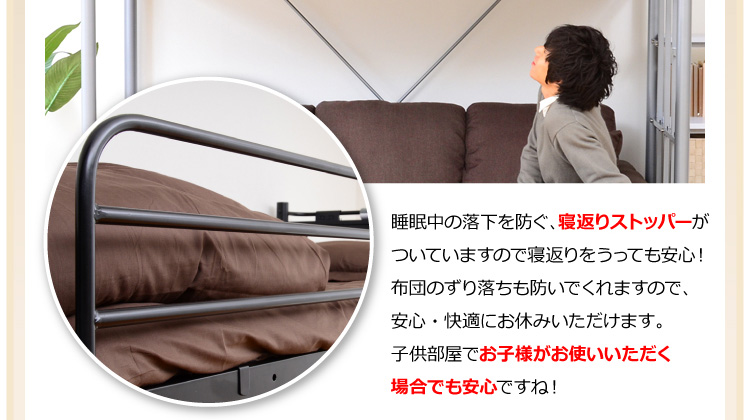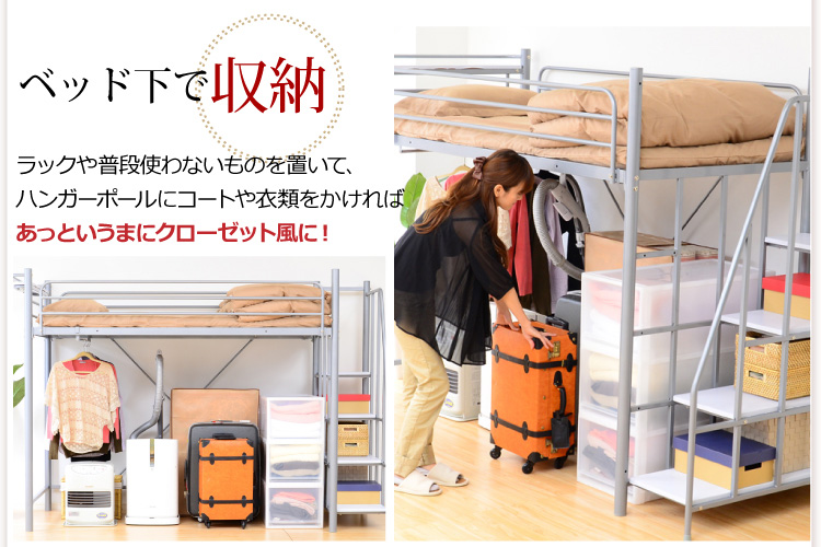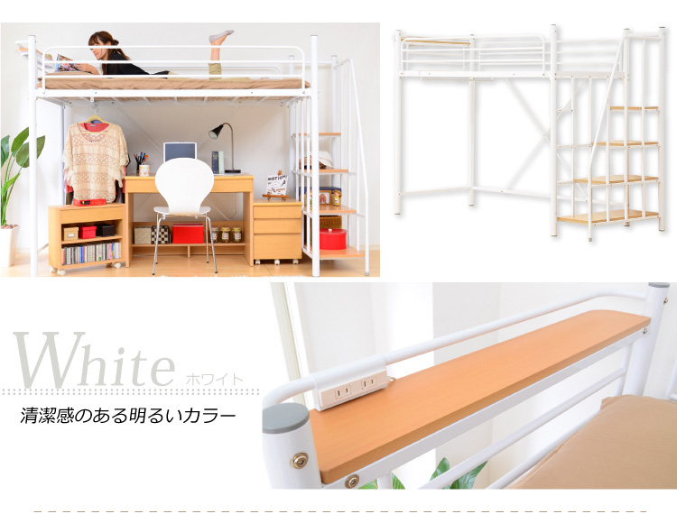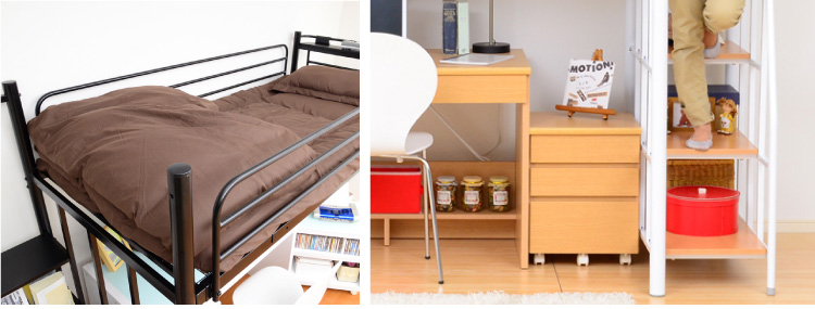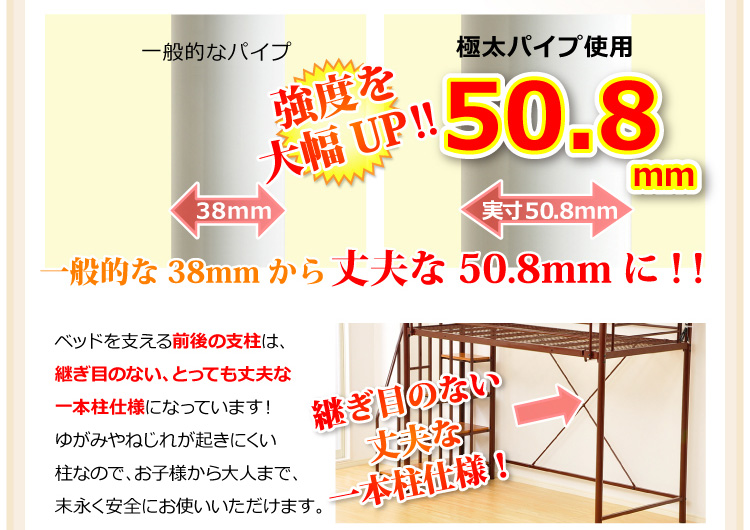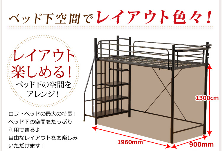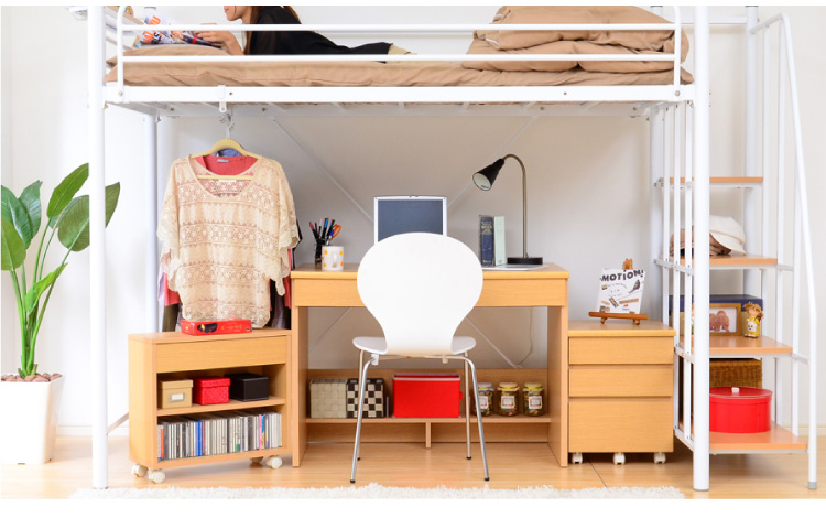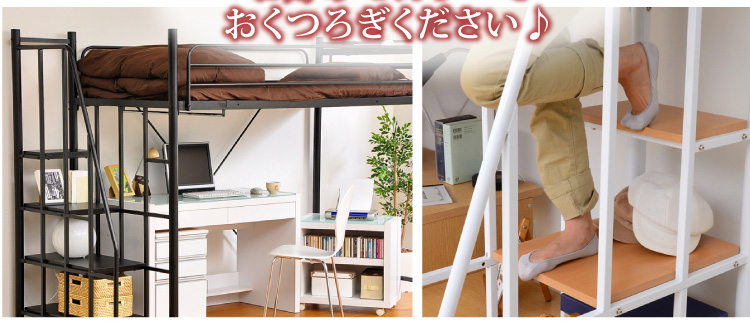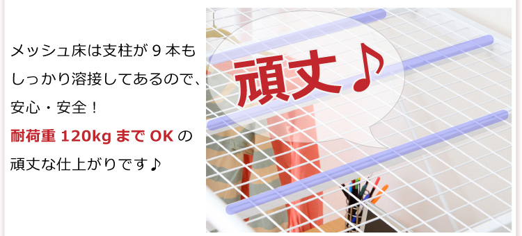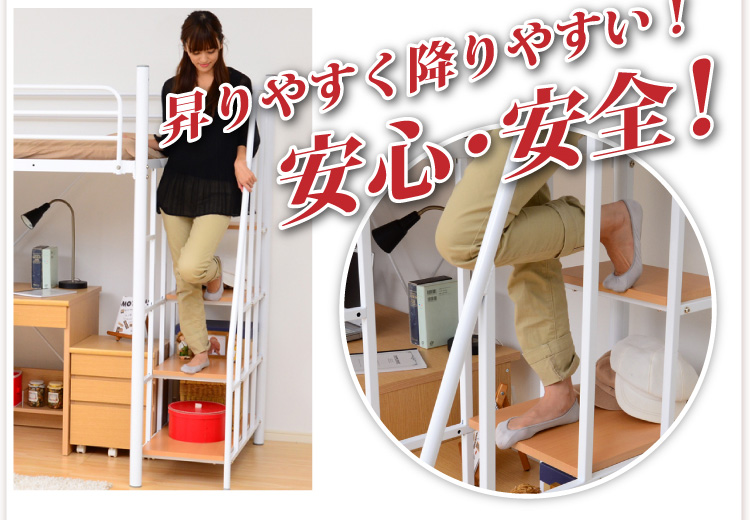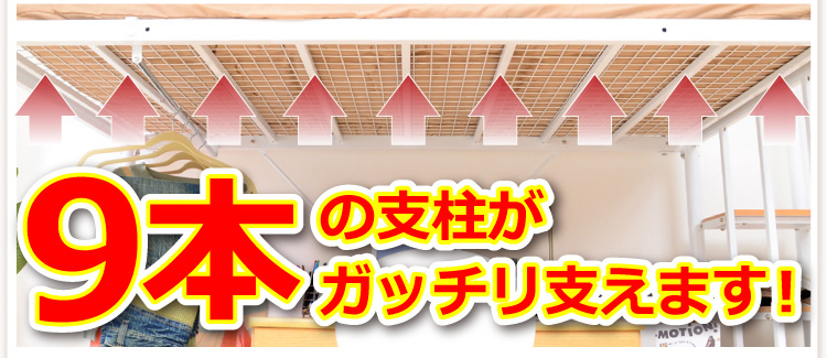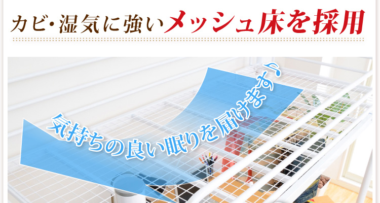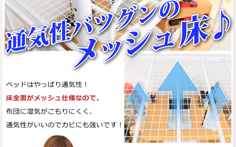 このロフトベッドは、床全面がメッシュ使用なのでとっても頑丈!そして布団に湿気がこもりにくく、通気性がいいので年中快適に過ごせます!