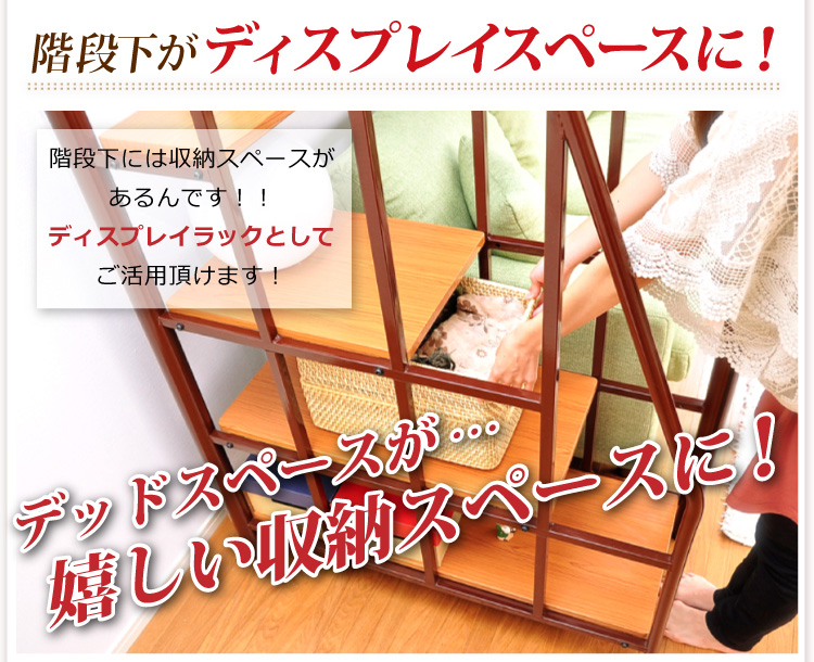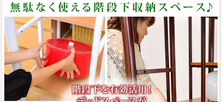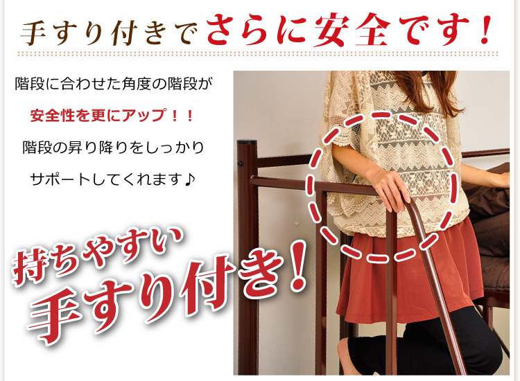 手すり付きの階段で安全に昇り降りできるから安全です。階段下は収納スペースになっているので、有効活用できます!