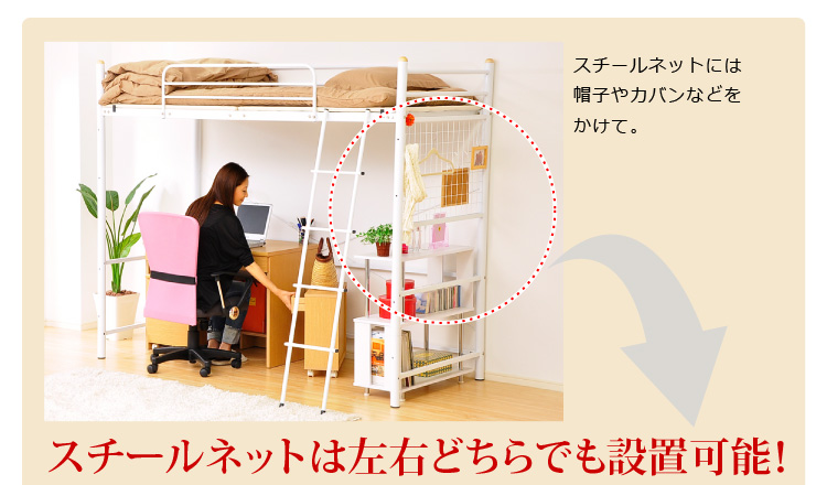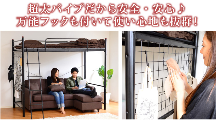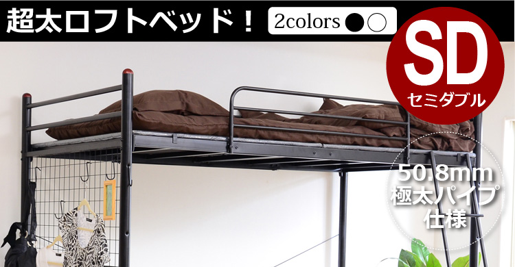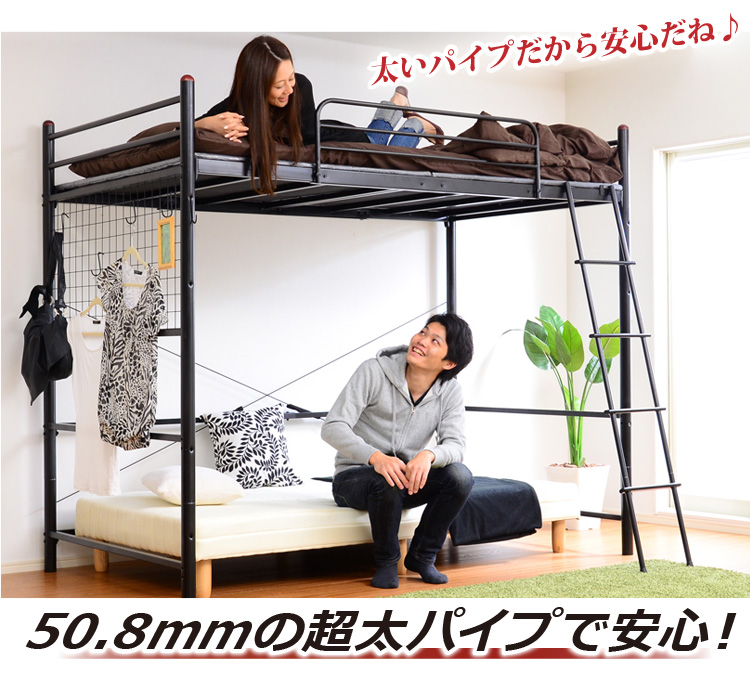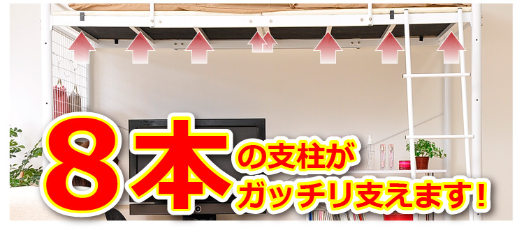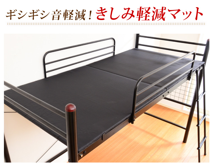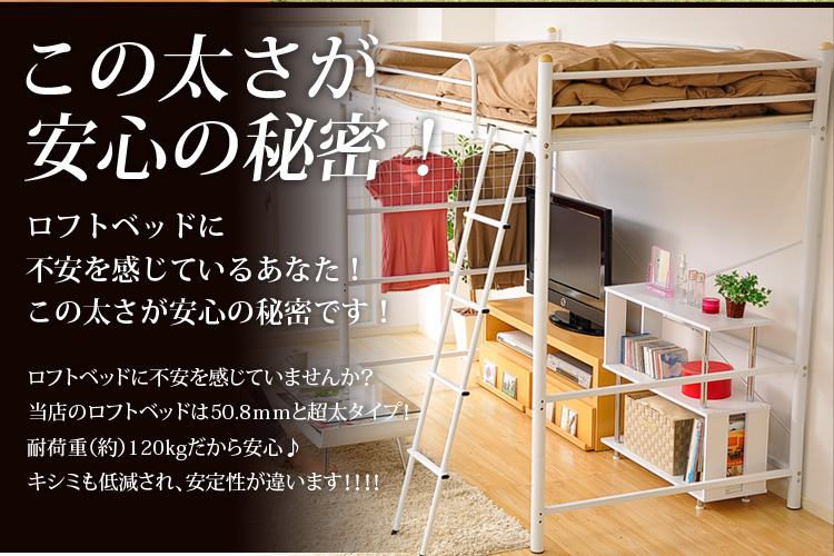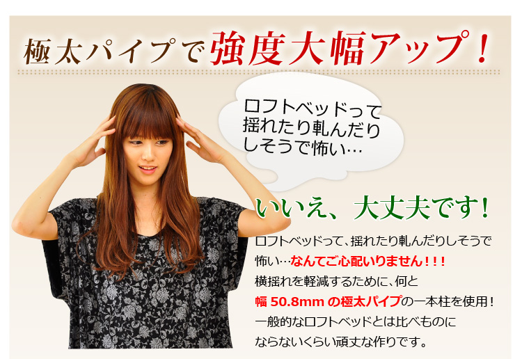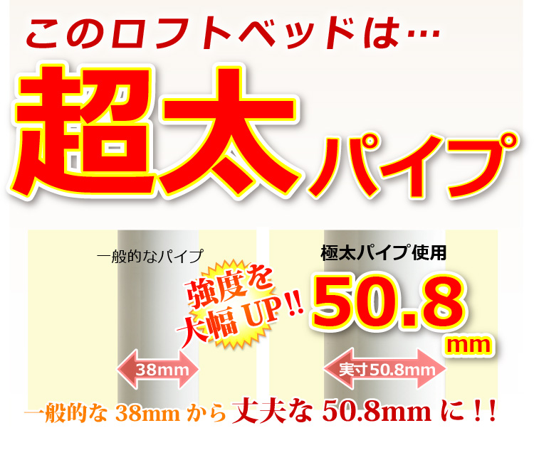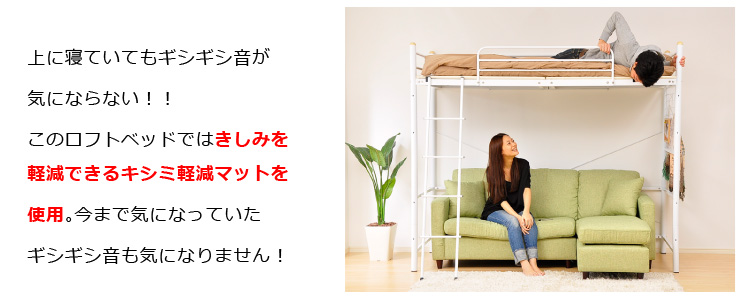 このロフトベッドは、横揺れや軋みを抑えるように極太のパイプを使用しています。また、さらに軋みを軽減できるマットも使用しています!