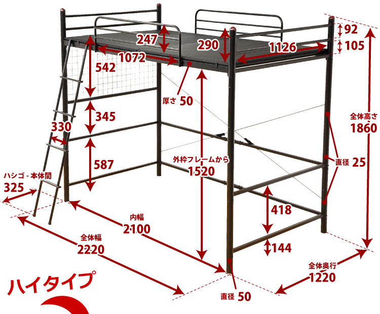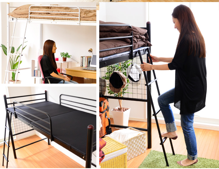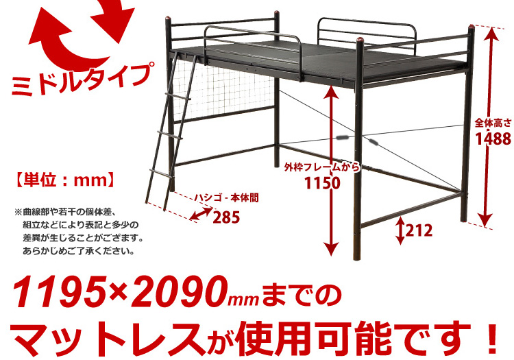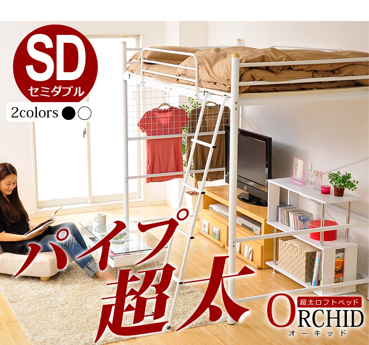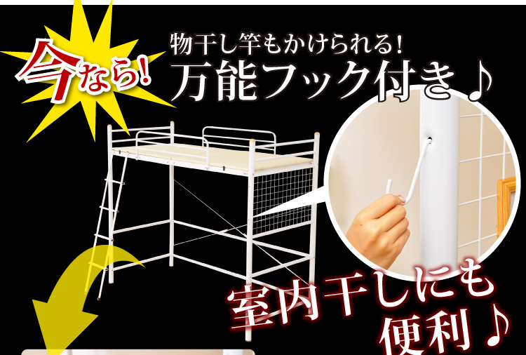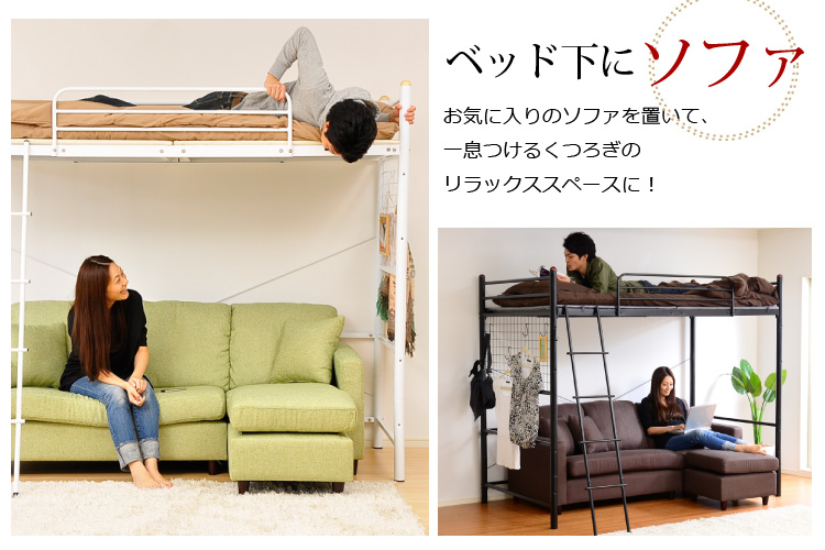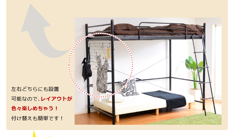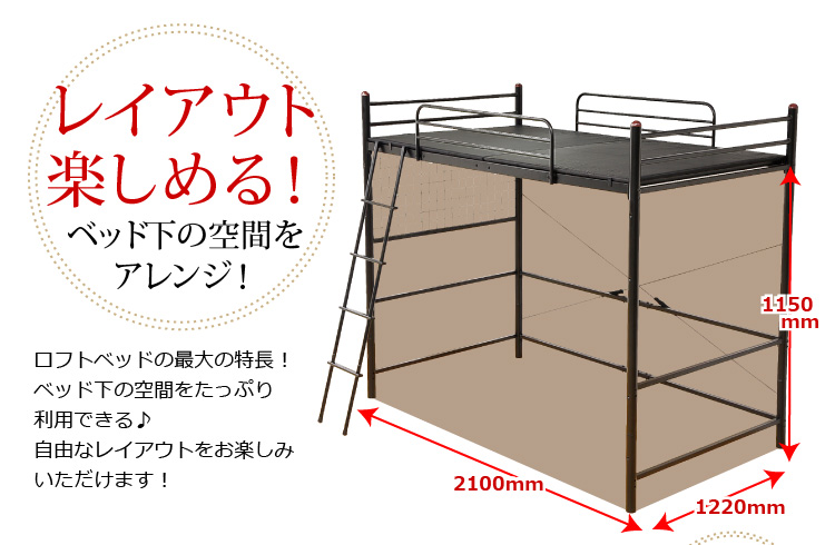 このロフトベッドは、横揺れや軋みを抑えるように極太のパイプを使用しています。また、さらに軋みを軽減できるマットも使用しています!