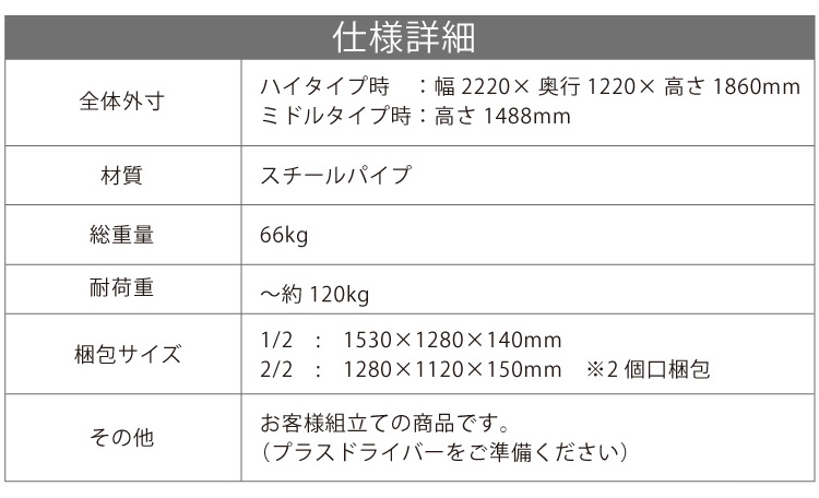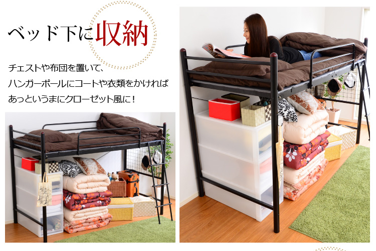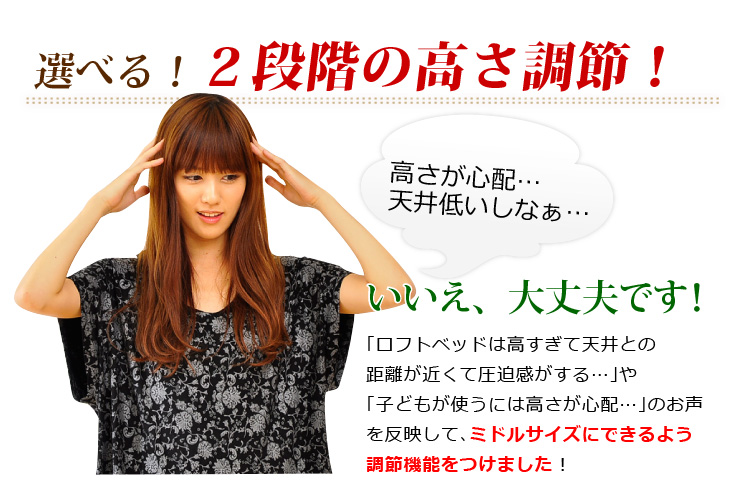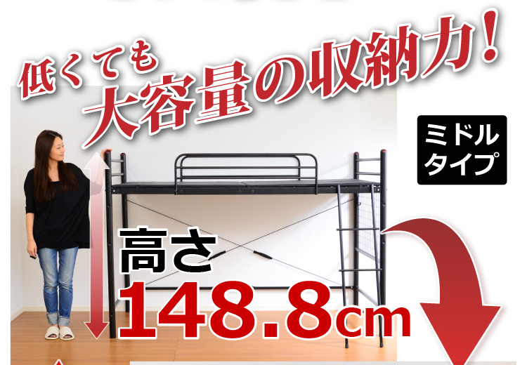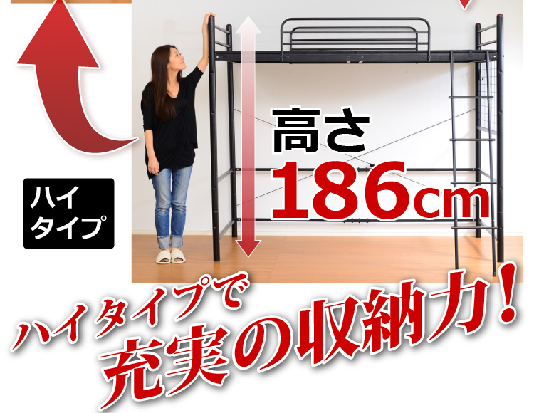 高さ148.8cmと高さ186cmの2段階に調節可能!両方ともベッド下の空間をたっぷり使えます!