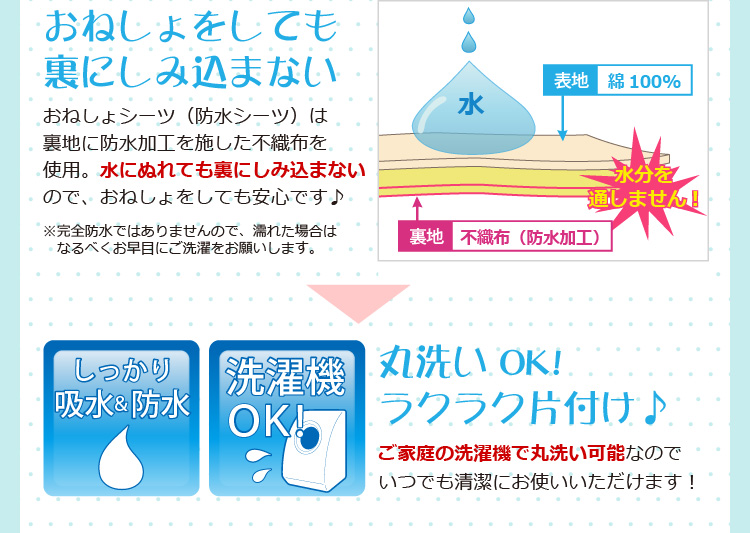 しっかりと吸水、防水してくれるので裏に染み込みません!もちろん洗濯機で丸洗い出来ます!