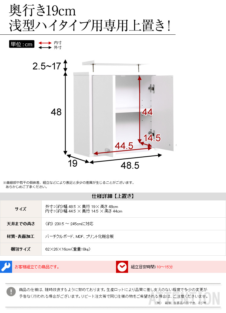可動棚付きの上置きで、本体上のデッドスペースを有効活用!広さも十分なので模型の空き箱等の保管に!