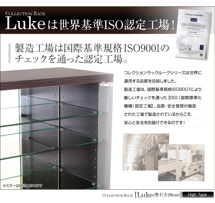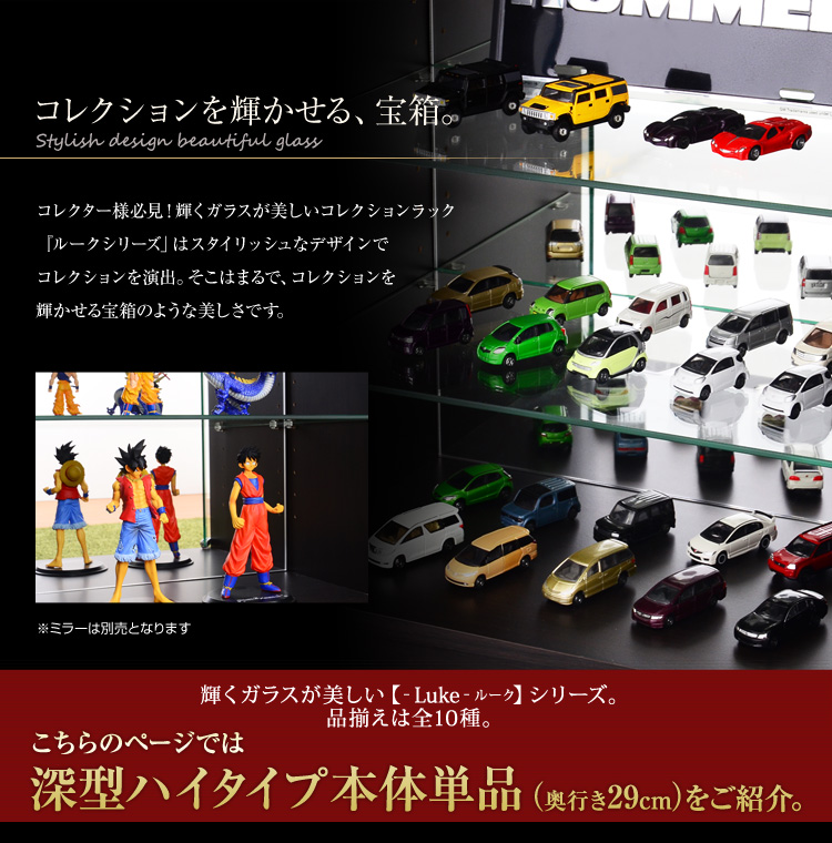 「ルークシリーズ」のコレクションラックはスタイリッシュなデザイン!あなたの大切なコレクションをより一層引き立たせてくれます!
