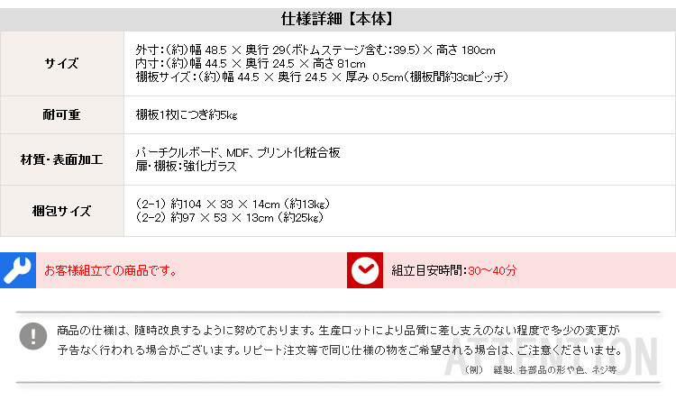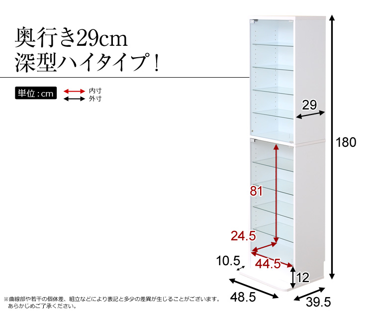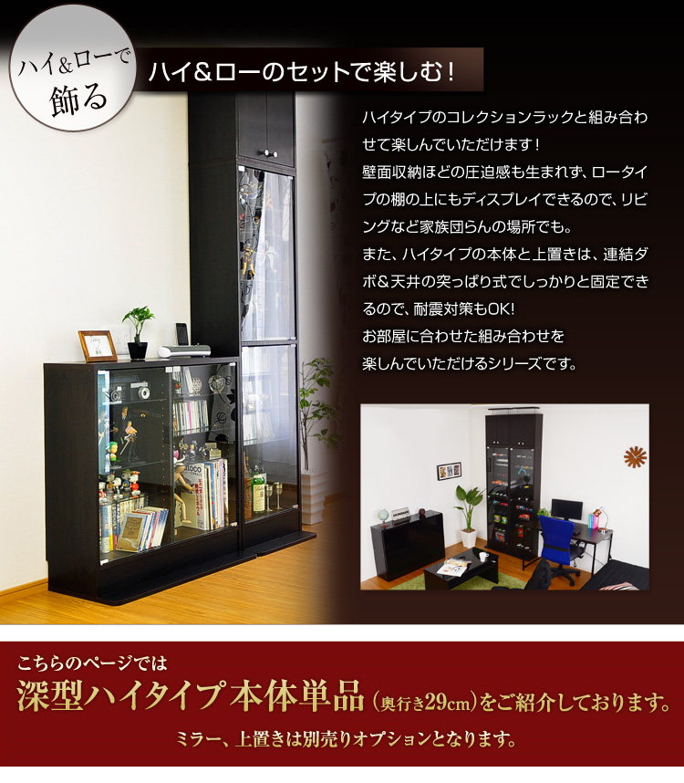 ハイタイプ(奥行き29cm)で高さが180cmもあるから背の高いコレクションを収納するのにも便利!