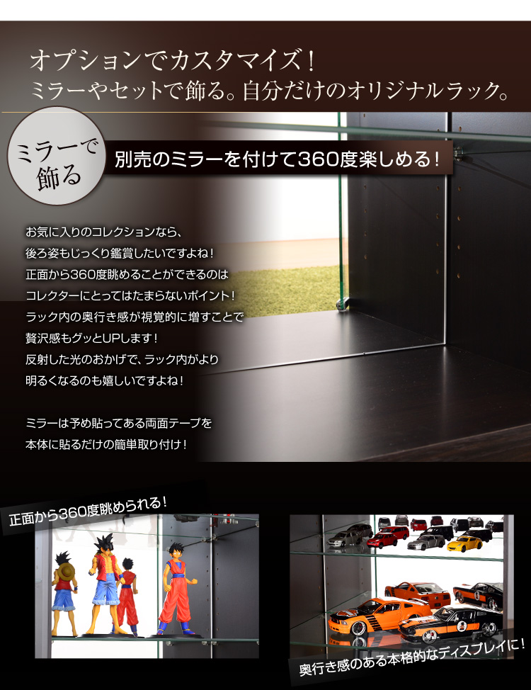 「ルークシリーズ」のコレクションラックはスタイリッシュなデザイン!あなたの大切なコレクションをより一層引き立たせてくれます!