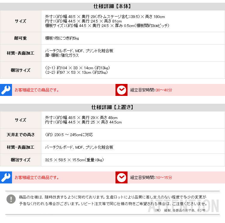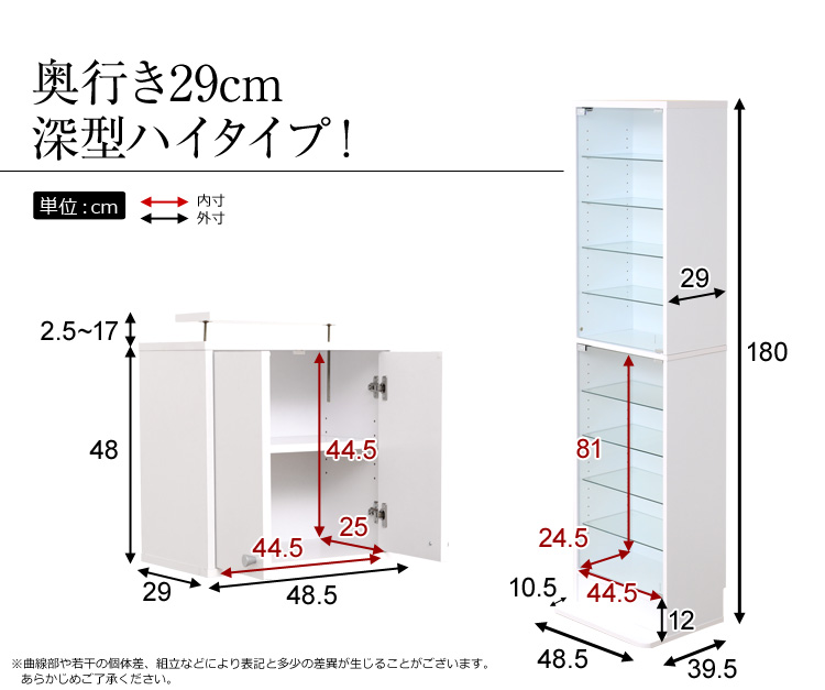 ハイタイプ(奥行き29cm)で高さが180cmもあるから背の高いコレクションを収納するのにも便利!