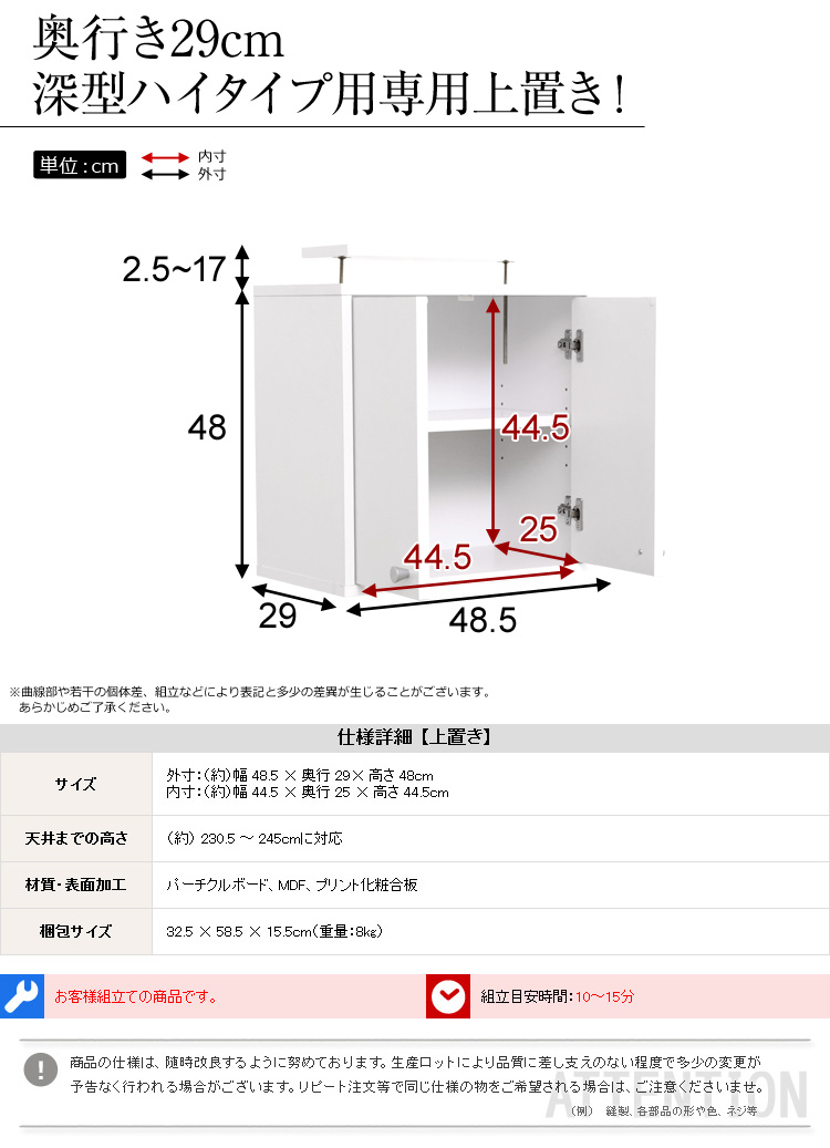 可動棚付きの上置きで、本体上のデッドスペースを有効活用!広さも十分なので模型の空き箱等の保管に!