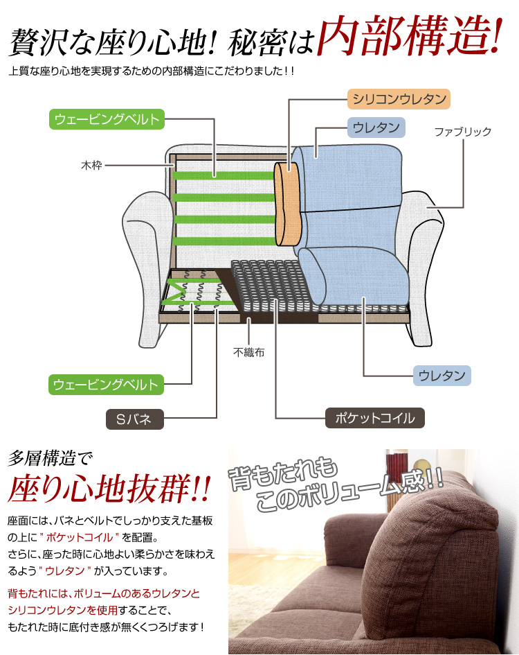 ポケットコイルやウレタンの多重構造で心地よい柔らかさが味わえます!