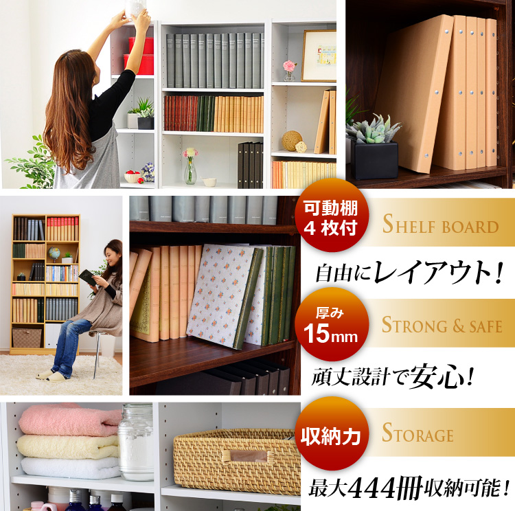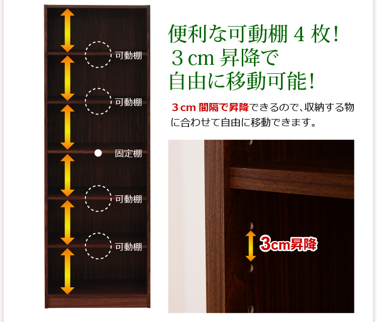 3cm間隔に移動できる可動棚が4枚付いているので収納物に合わせて収納できます!