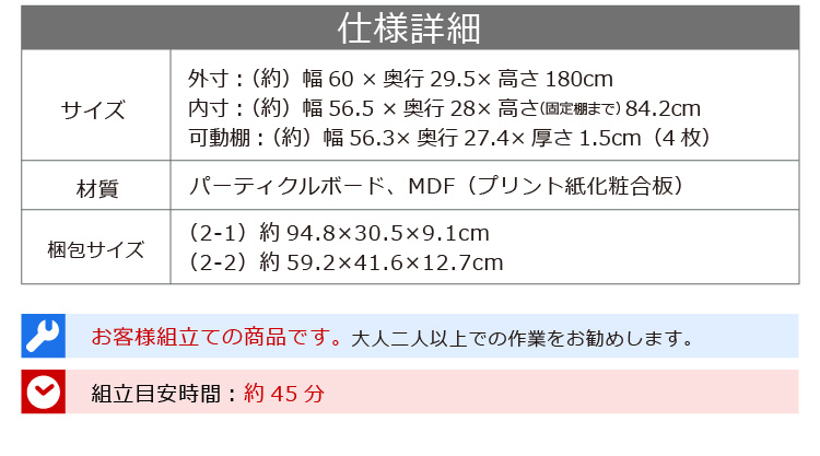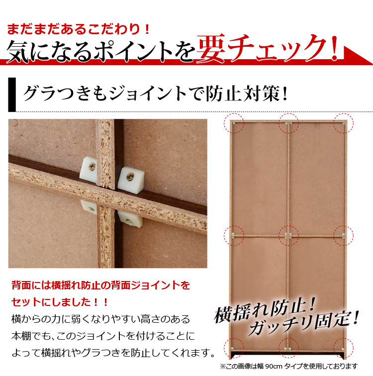 180cmと高い棚でも背面ストッパーを付けていただくことにより、横揺れやグラつきを防止します!
