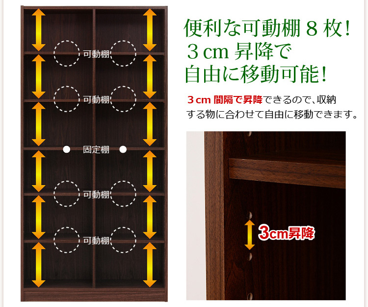 3cm間隔に移動できる可動棚が4枚付いているので収納物に合わせて収納できます!