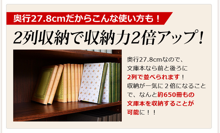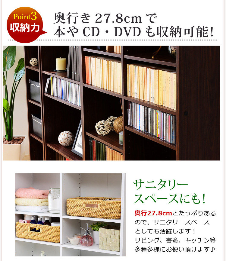 奥行き27.8㎝もあるので色々な物が収納できます!リビングや書斎、キッチン等、多種多様にお使いください!