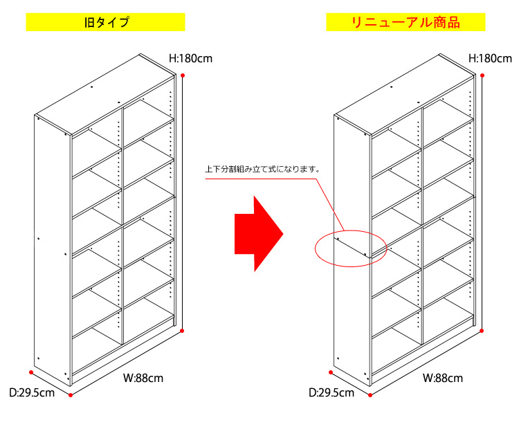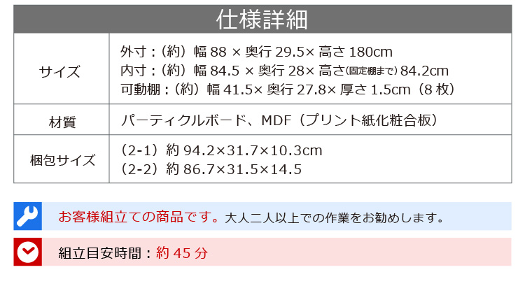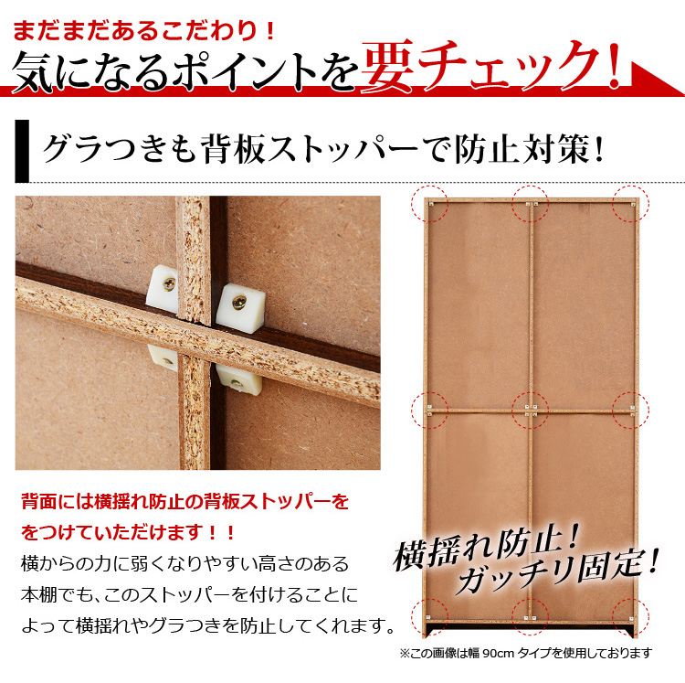 180cmと高い棚でも背面ストッパーを付けていただくことにより、横揺れやグラつきを防止します!
