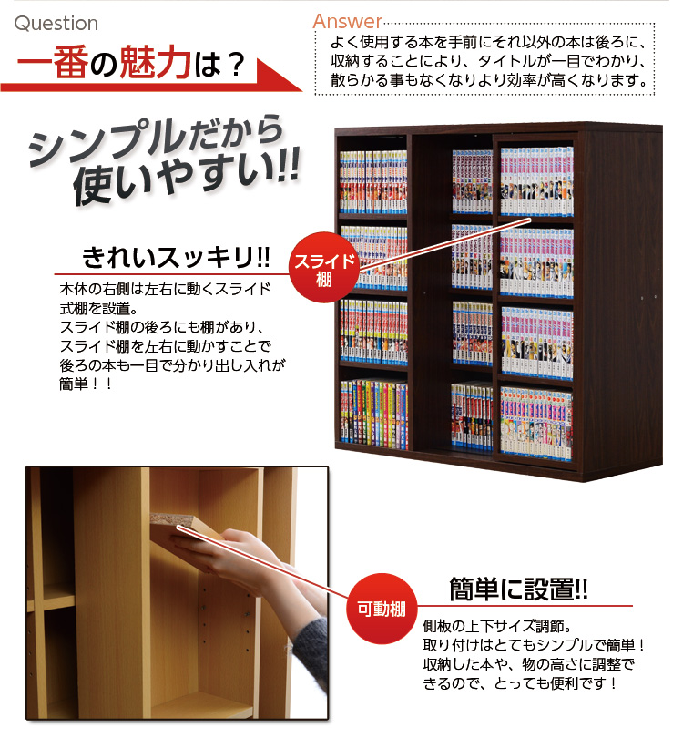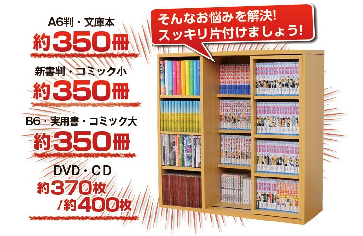 コンパクトなサイズながら大容量収納できます!マンガや単行本にぴったり!