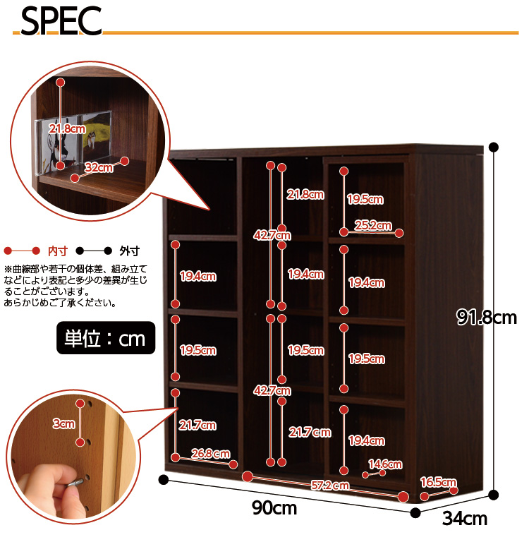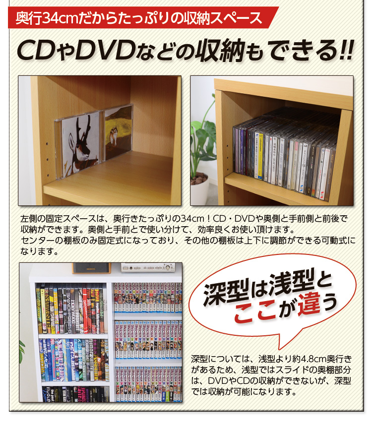 深型は浅型と違い、約4.8㎝程の奥行きがあるので、スライドの奥棚部分にDVDやCDを収納できます!