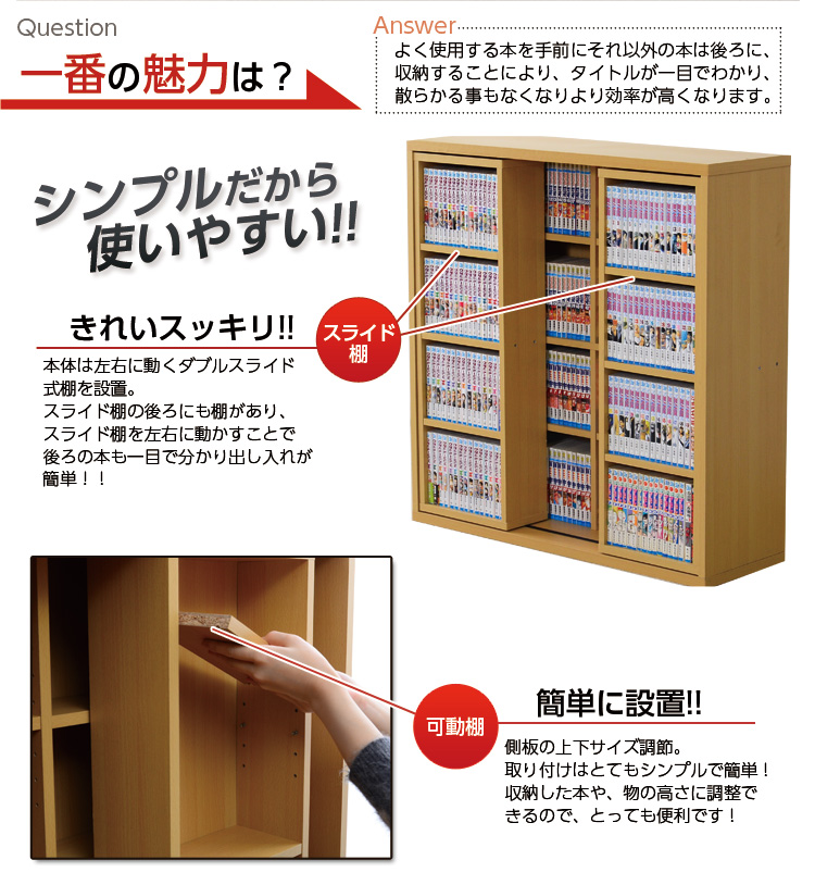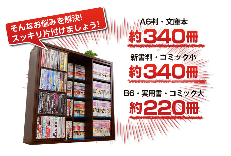 コンパクトなサイズながら大容量収納できます!マンガや単行本にぴったり!