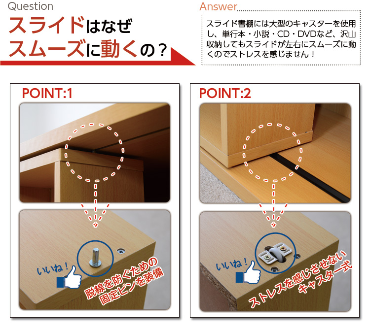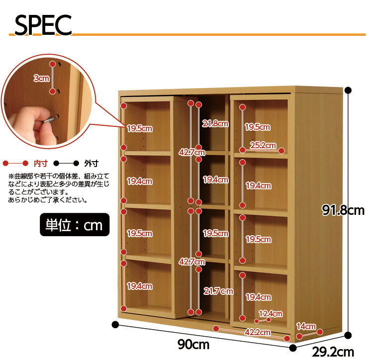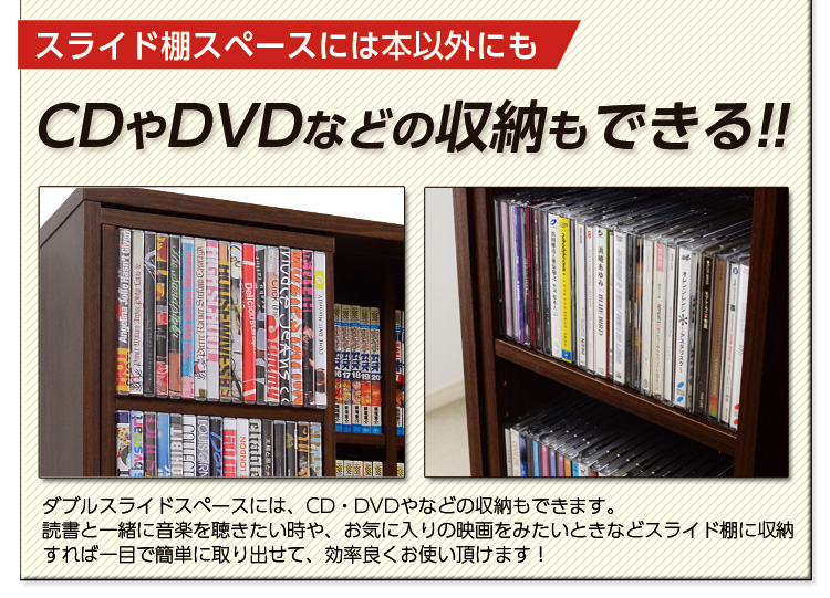 スライドスペースにはCDやDVDを収納できます。音楽を聴く時、映画を観たい時に効率よく取り出せます!