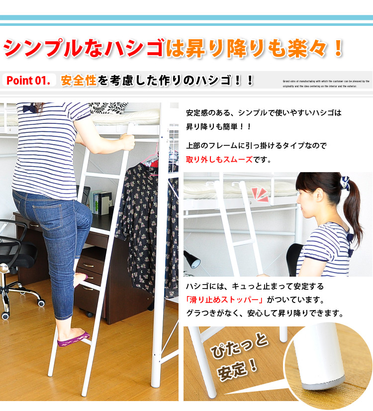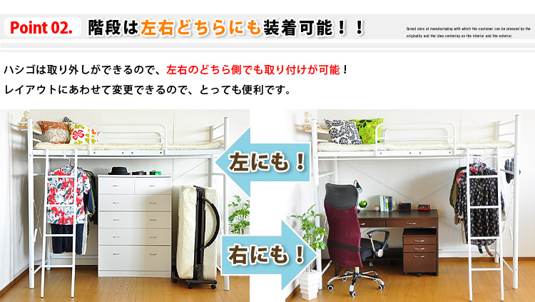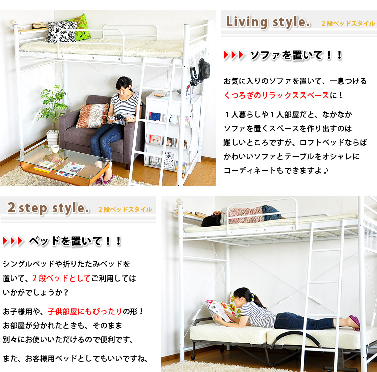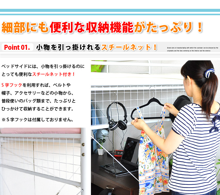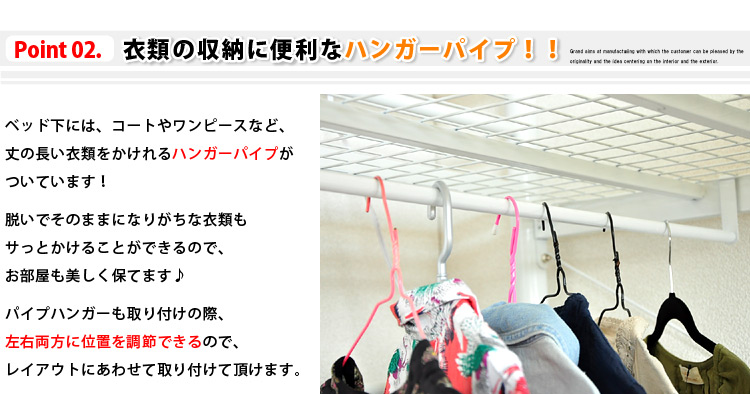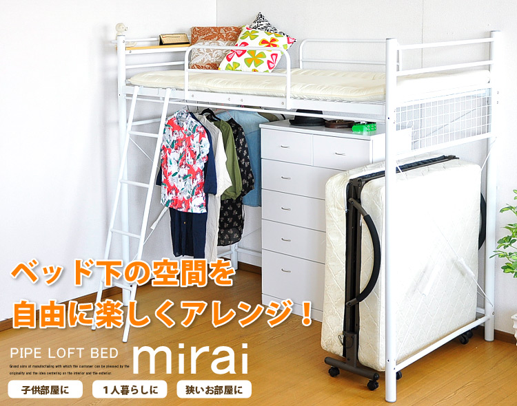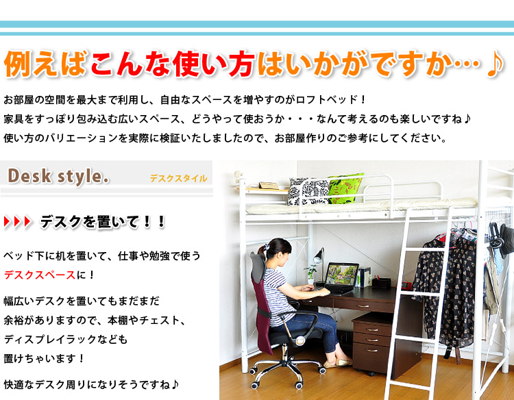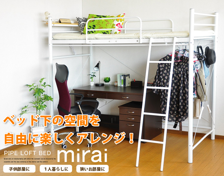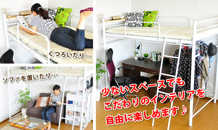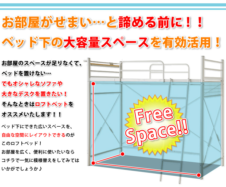 子供部屋や一人暮らしのお部屋などにおすすめ!ベッド下を自由な空間にレイアウト!お部屋を広くお使いいただけます!