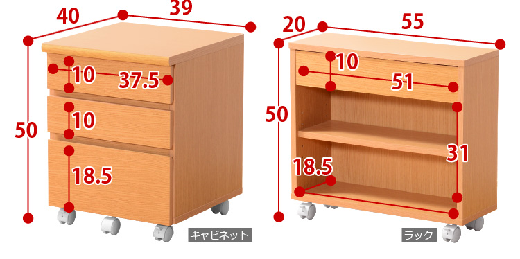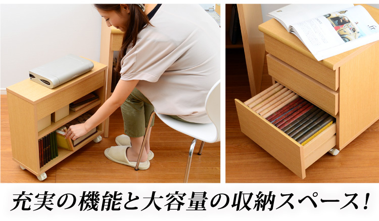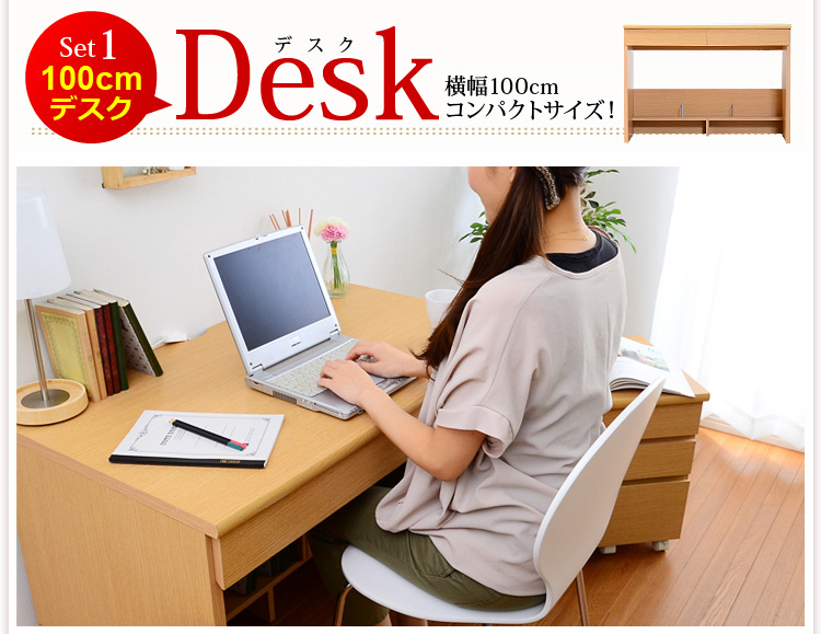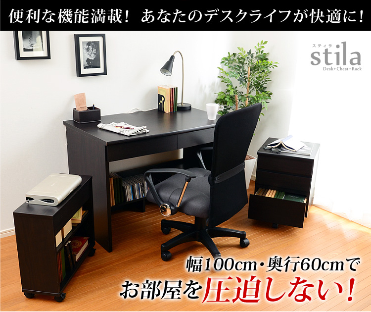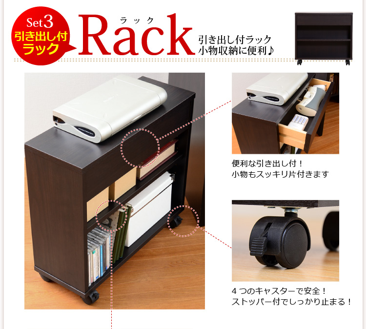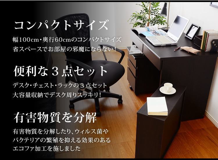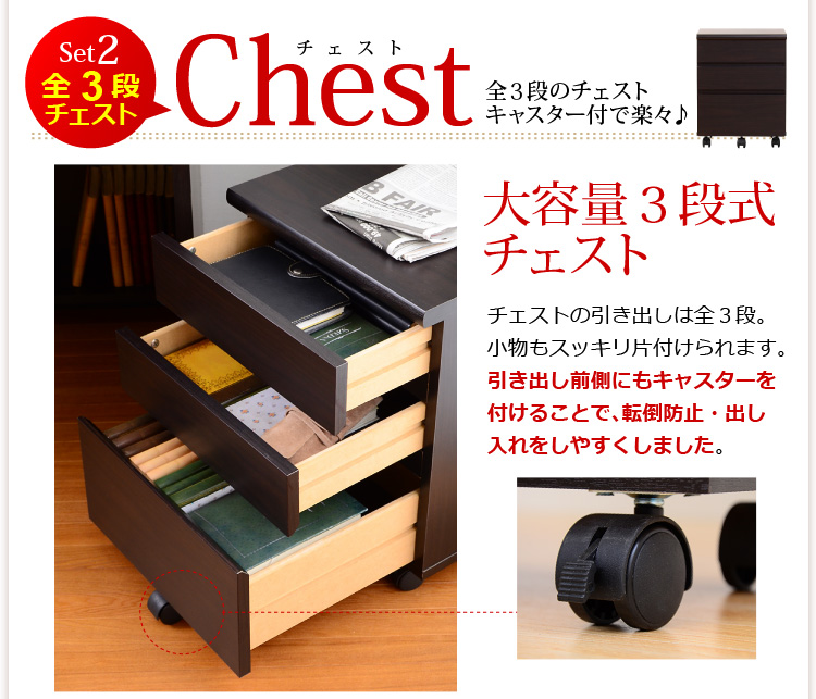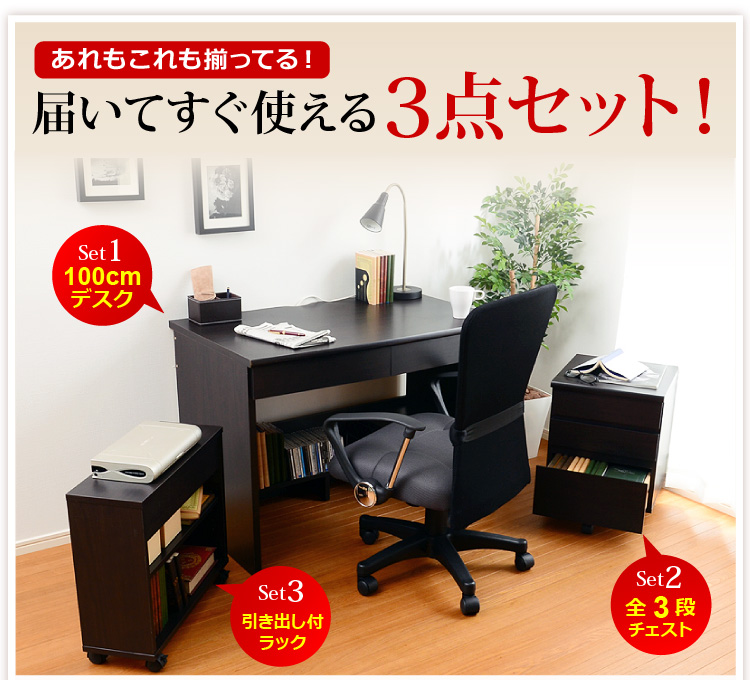 デスク、チェスト、ラックの3点セット!デスク周りをすっきりと収納して快適なデスクワークを!