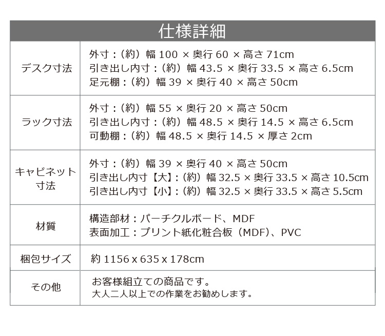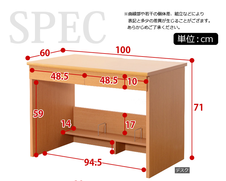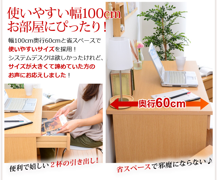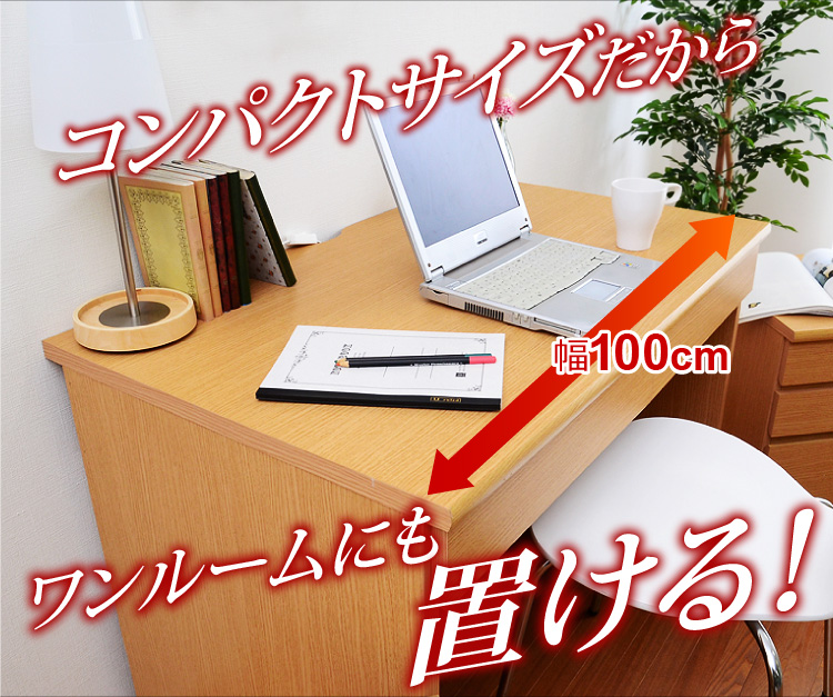 幅100cm、奥行き60cmのサイズですのでお部屋の邪魔になりません。ワンルームにも置けます!