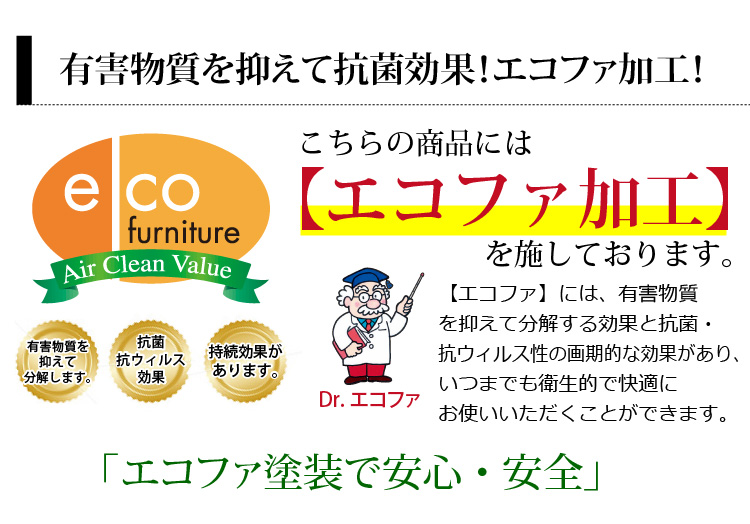 こちらのコンパクトデスクには有害物質を抑えて抗菌効果のあるエコファ加工を施しています。なので衛生的で安全にお使いいただけます!