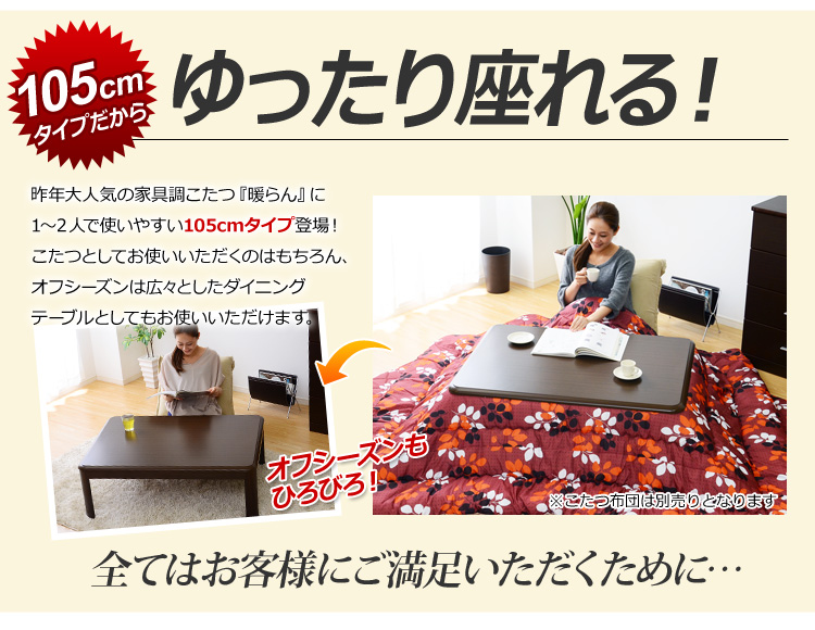 普段はリビングテーブルとして、冬の時期はコタツとしてお使いいただけます!※こちらの商品はコタツ布団はセットではございません。