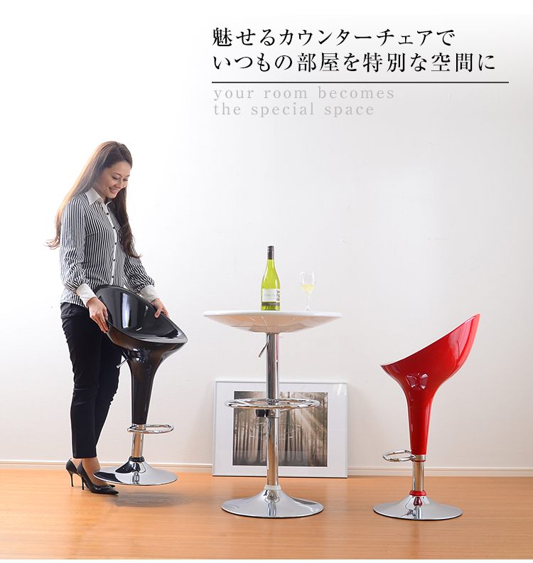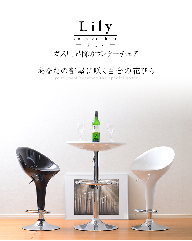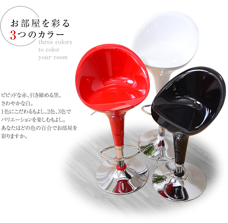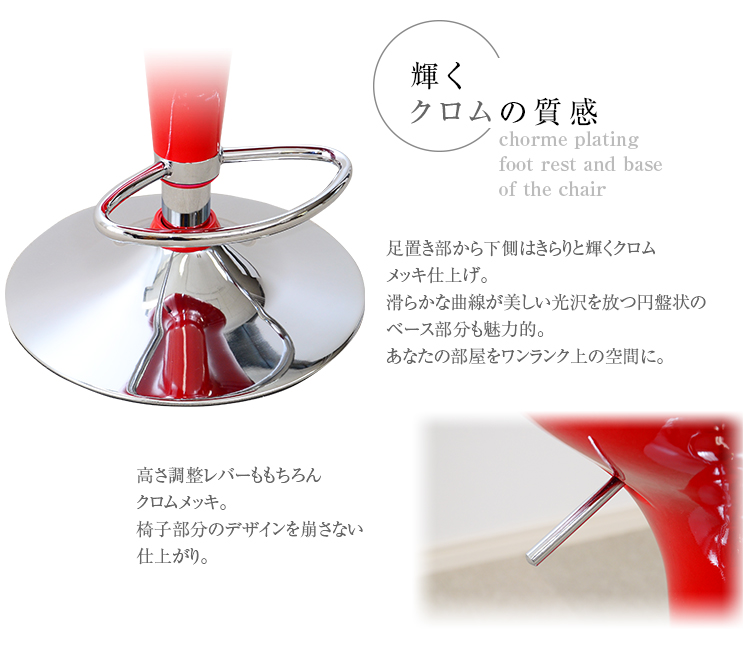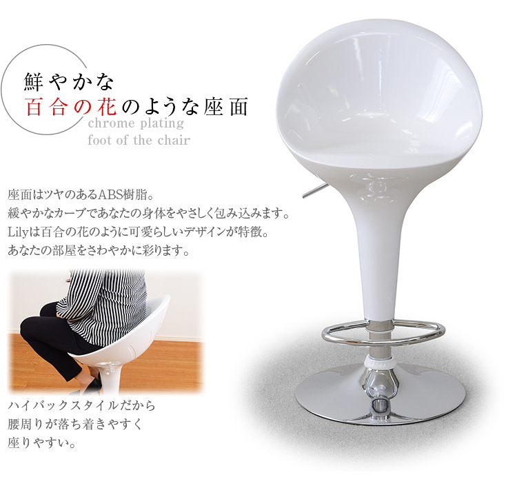 ツヤのある鮮やかな百合の花のような座面、輝くクロムの質感でお部屋がワンランク上の空間に!