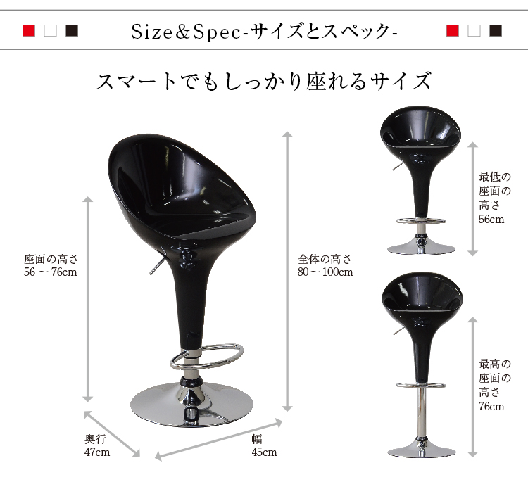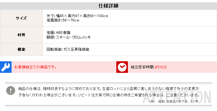 56cm~76cmの間で好みの高さに変えられます。ガス昇降式なのでレバー操作で力もいりません。