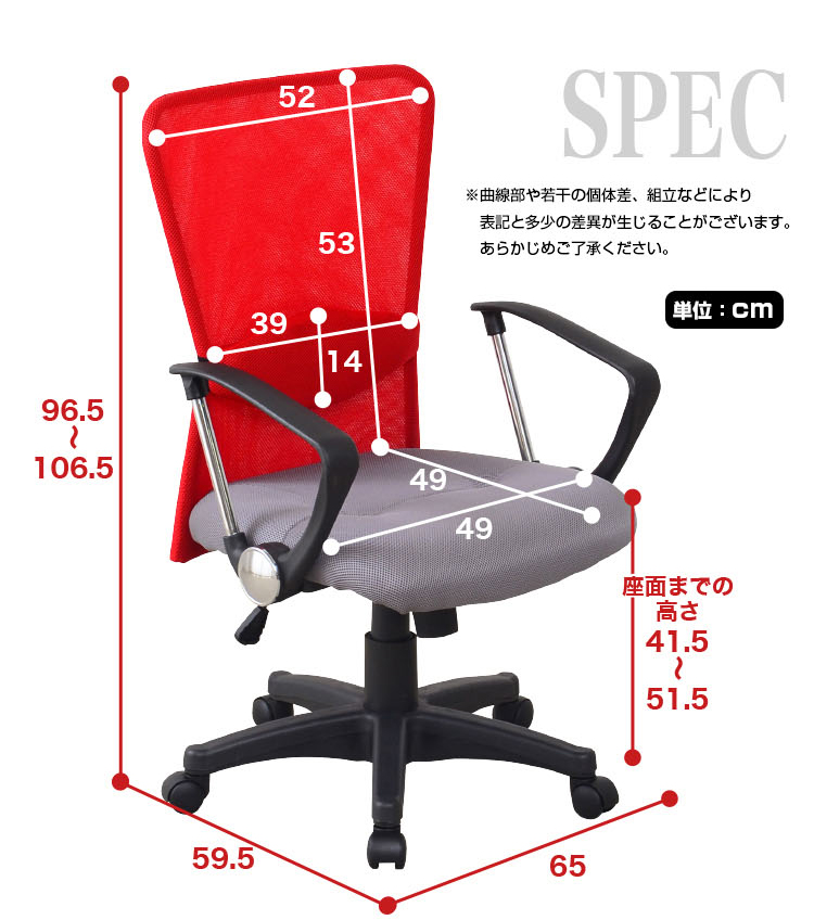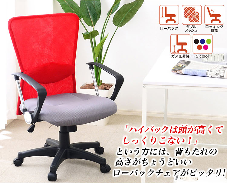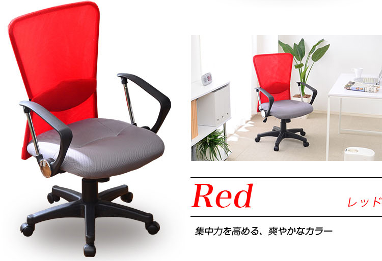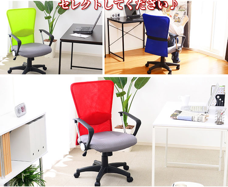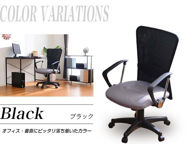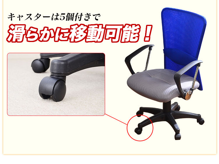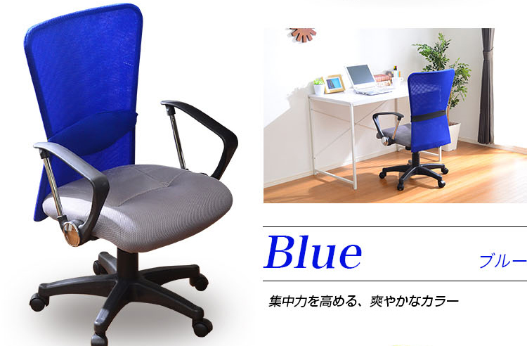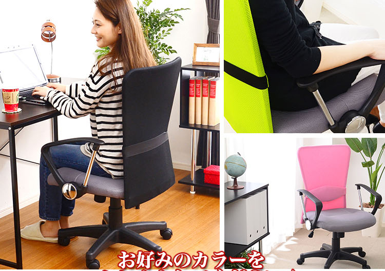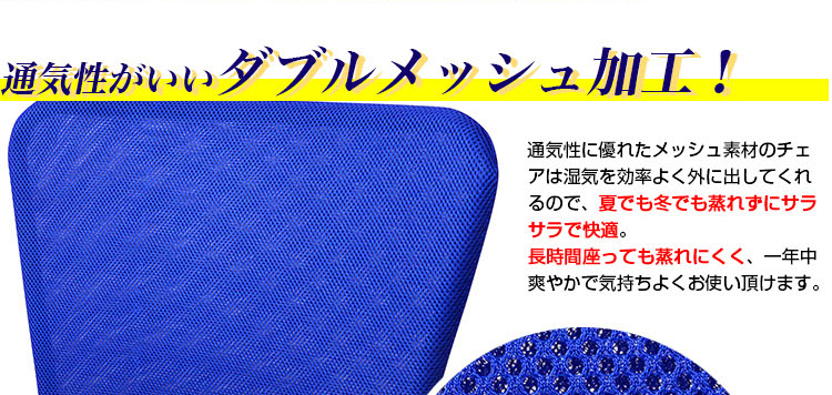 背面にメッシュ素材を用いているので長時間の作業で座っていても湿気にくく快適に過ごせるオフィスチェアです!