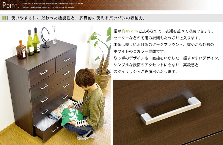 89cmのワイドサイズで衣類が3列並べてたっぷり収納できます。