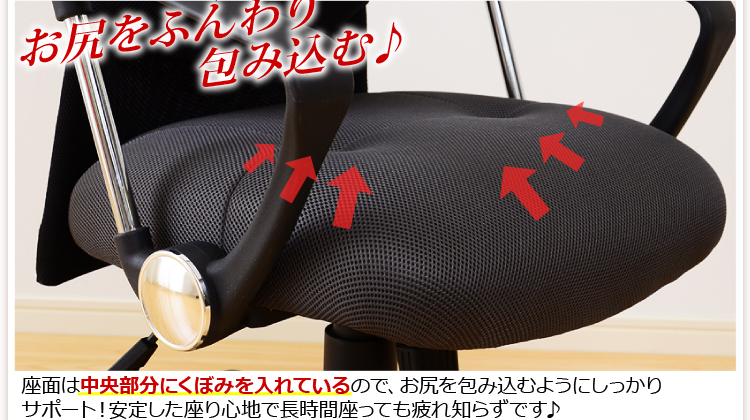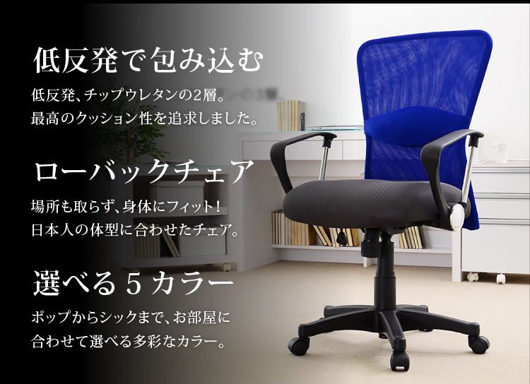 座面は低反発ウレタンで最高のクッション性!背面には通気性に優れたダブルメッシュ!オフィスにプライベートに大活躍のチェアです!