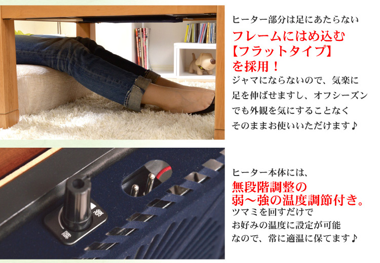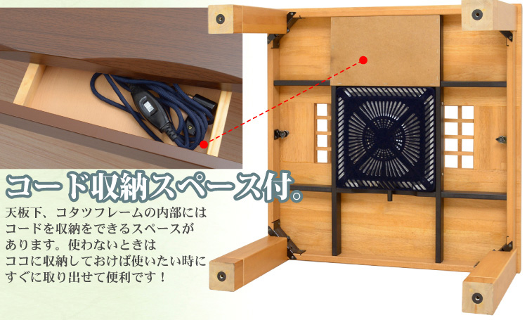 普段はリビングテーブルとして、寒いときにはコタツとして大活躍!コードを収納するスペースもあるのでいつでもすぐに取り出せて便利!