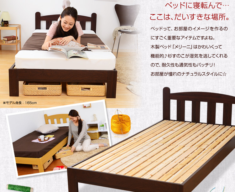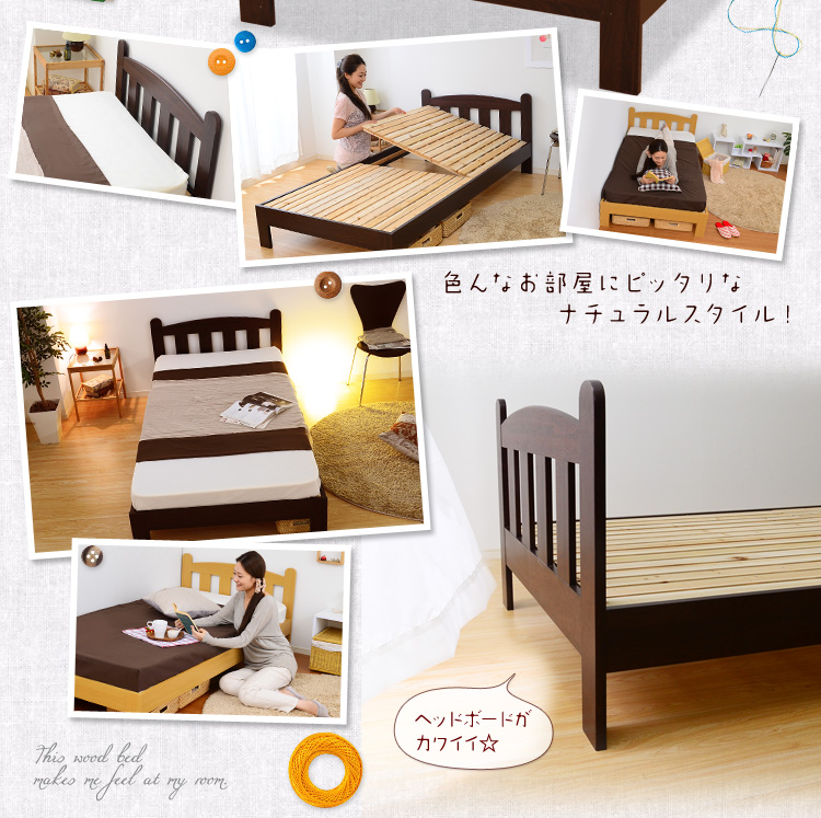 こちらの木製ベッドはかわいらしくて機能的!耐久性も通気性も納得のベッドです!