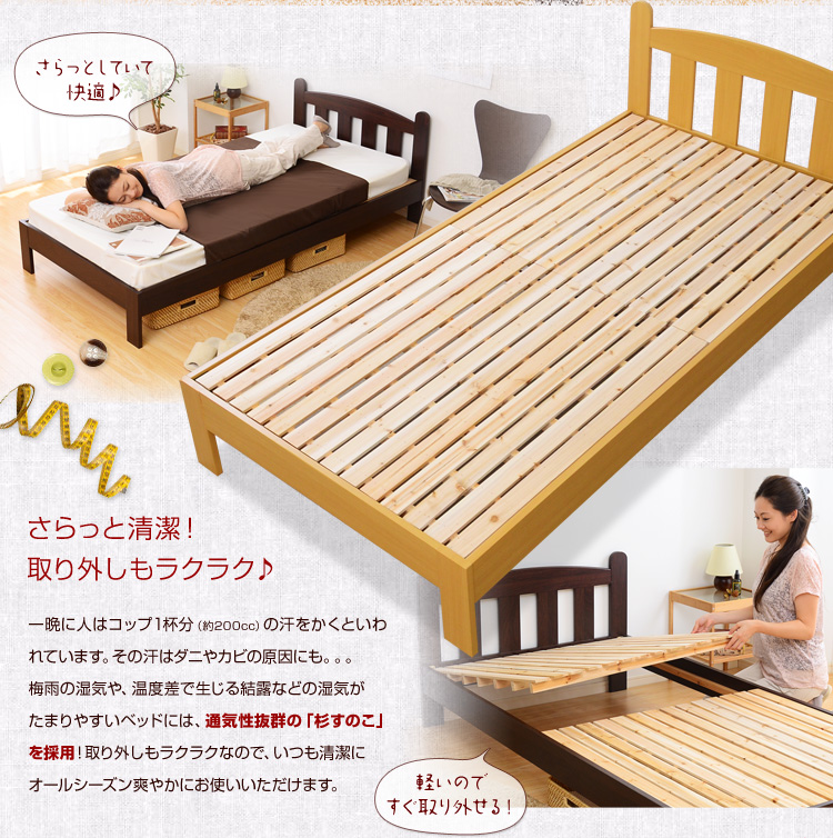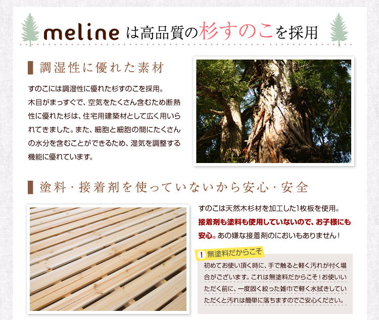 調湿性に優れた高品質の杉すのこを使用しています。取り外しも簡単でいつも清潔に!オールシーズンお使いいただけます!