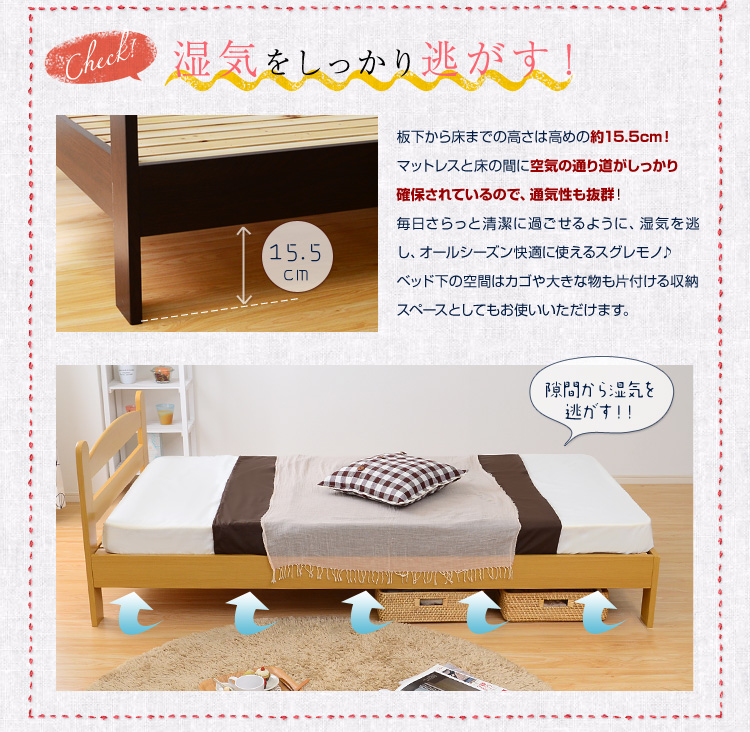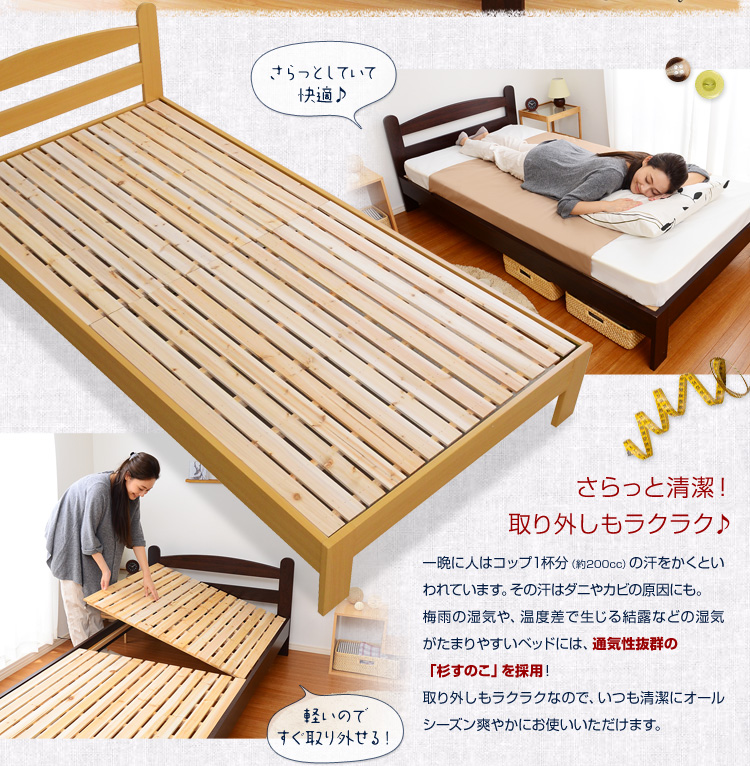 調湿性に優れた高品質の杉すのこを使用しています。取り外しも簡単でいつも清潔に!オールシーズンお使いいただけます!