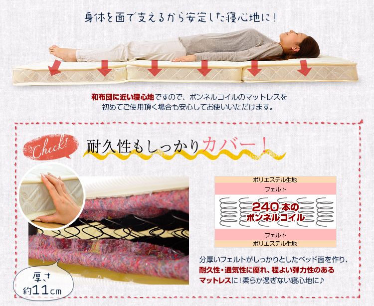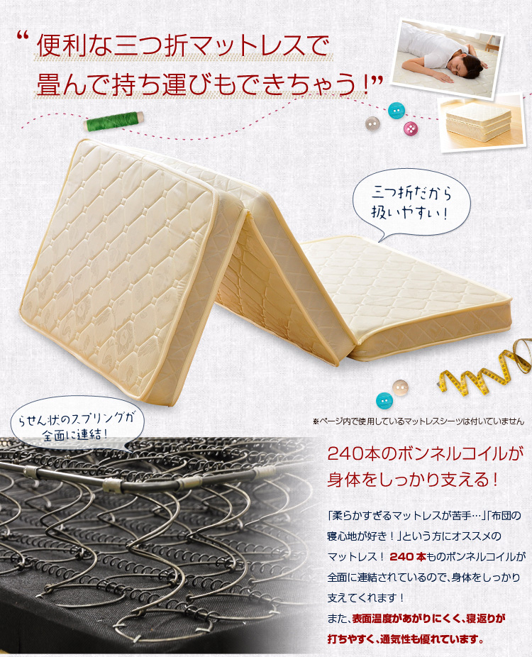 三つ折マットレスがセットなので届いてすぐに使えます!