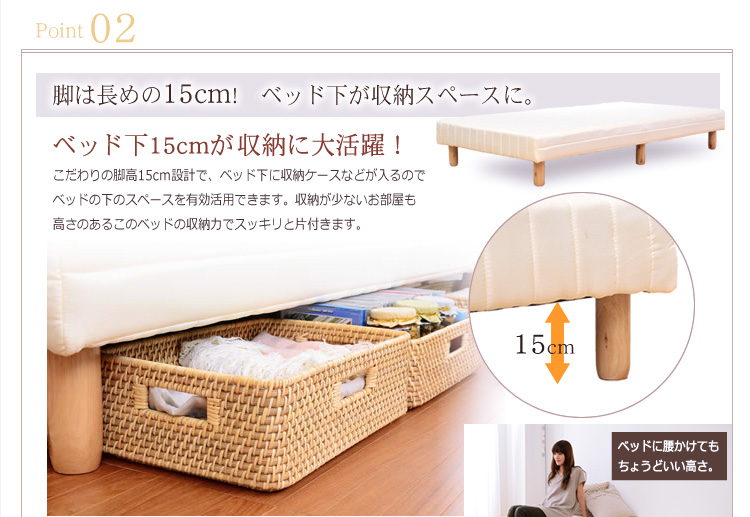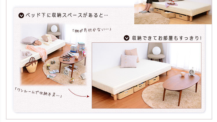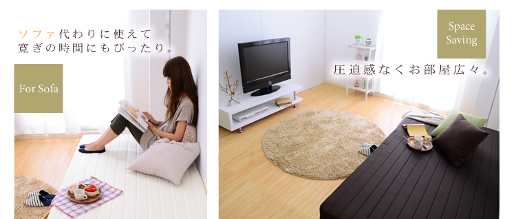 圧迫感がなく、お部屋がスッキリと広く見えます!ベッドだけではなくソファとしても使えるので、シーンに合わせて使い分ける事ができます!