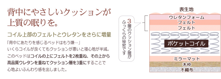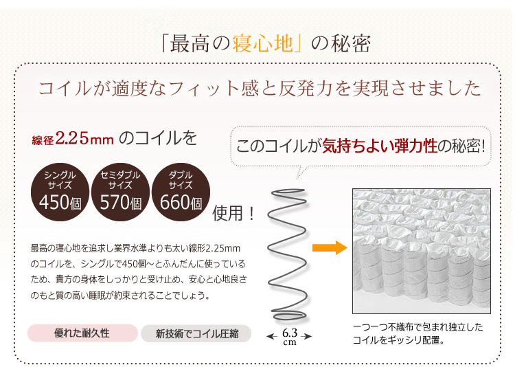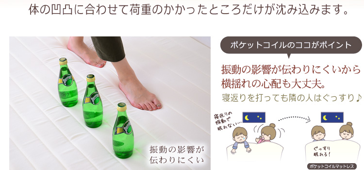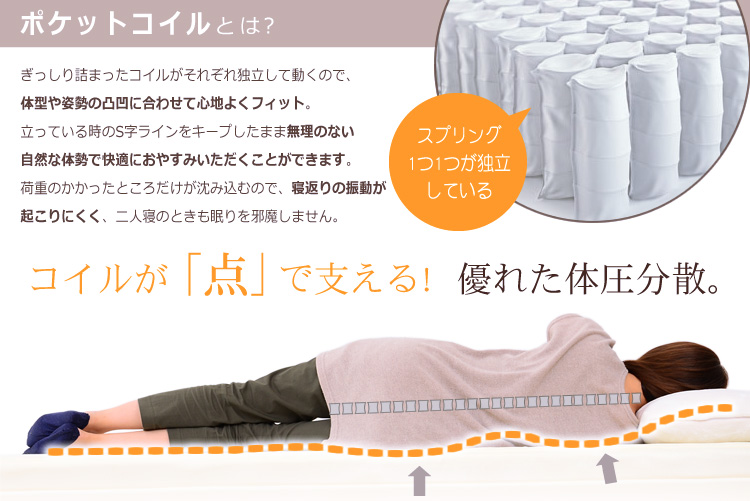 身体を点で支えてくれるポケットコイル構造で包まれるような、安心感のある寝心地を味わえます!
