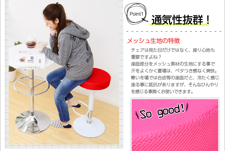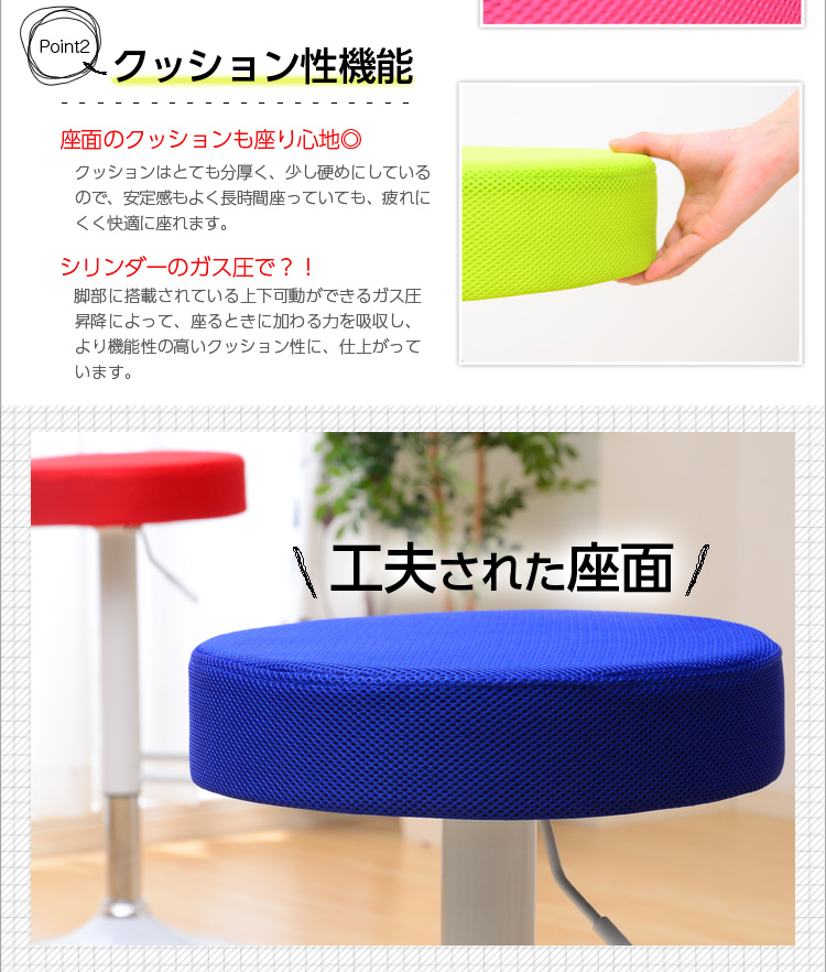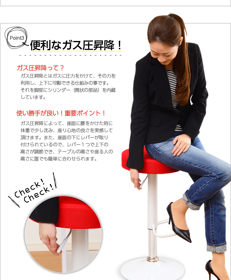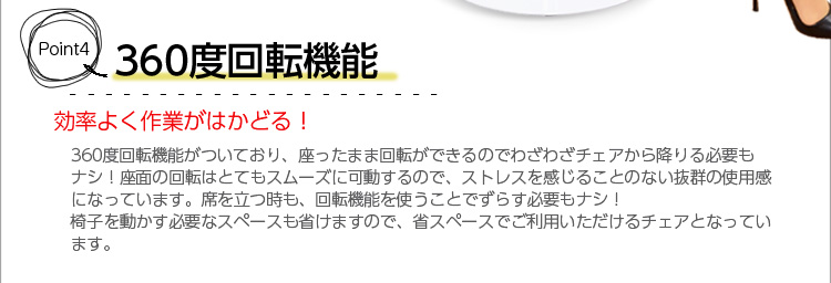 高さを調節する、ガス圧昇降機能と360度回転機能もあるので便利!