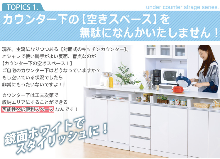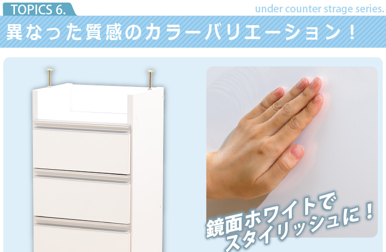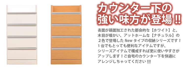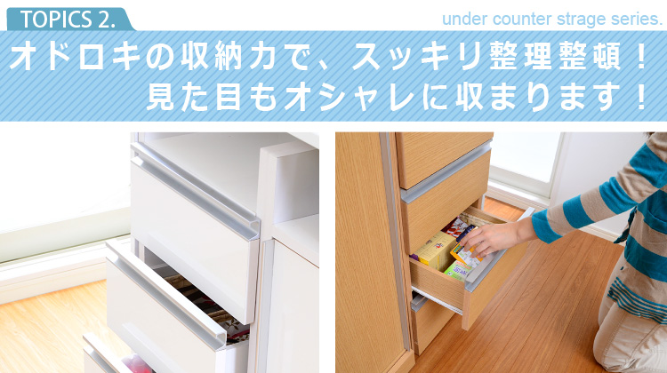 カウンター下を収納エリアにする事ができる「カウンター下収納シリーズ」の引き出しタイプ(40cm幅)です。こちらの商品でご自宅のカウンター下を有効活用して下さい!/p>