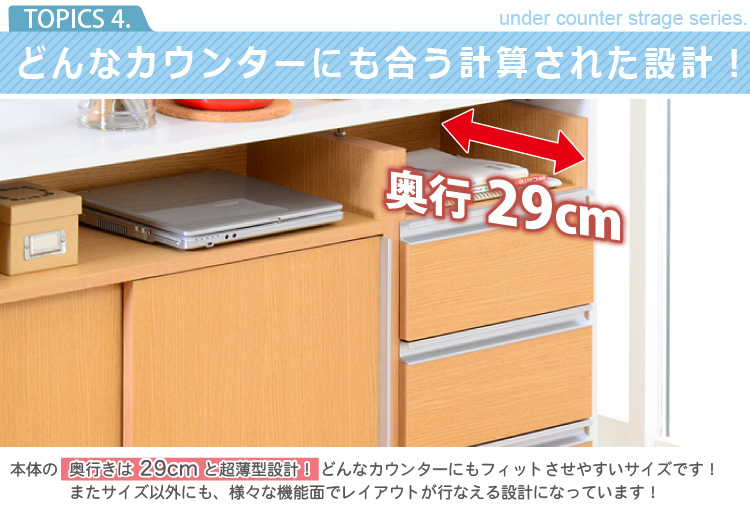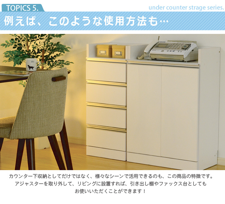 カウンター下収納としてだけではなく、リビングなどに設置して引き出し棚や電話台、ファックス台としても使用できます!